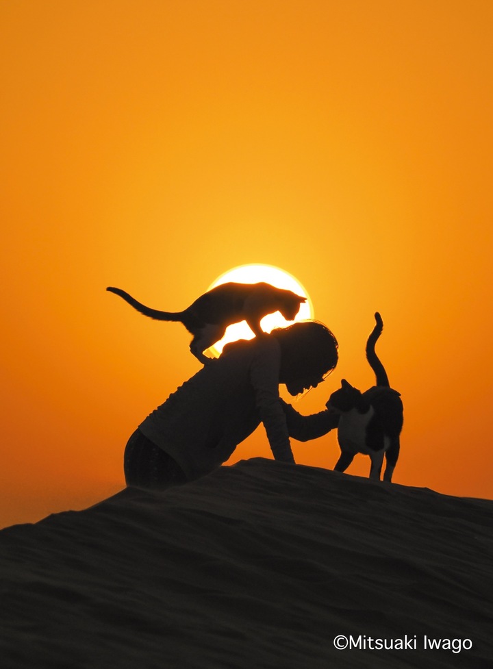 Está claro que a Mitsuaki Iwago le gustan mucho los gatos, pero también que a los gatos les cae muy bien y que están encantados de dejarse fotografiar, como puede verse por algunas de las imágenes incluidas aquí. Ha publicado más de diez libros de fotos gatunas, de los cuales los más famosos quizá sean “Gatos y leones”, “Gatos curiosos” y “Stand by Meow”.