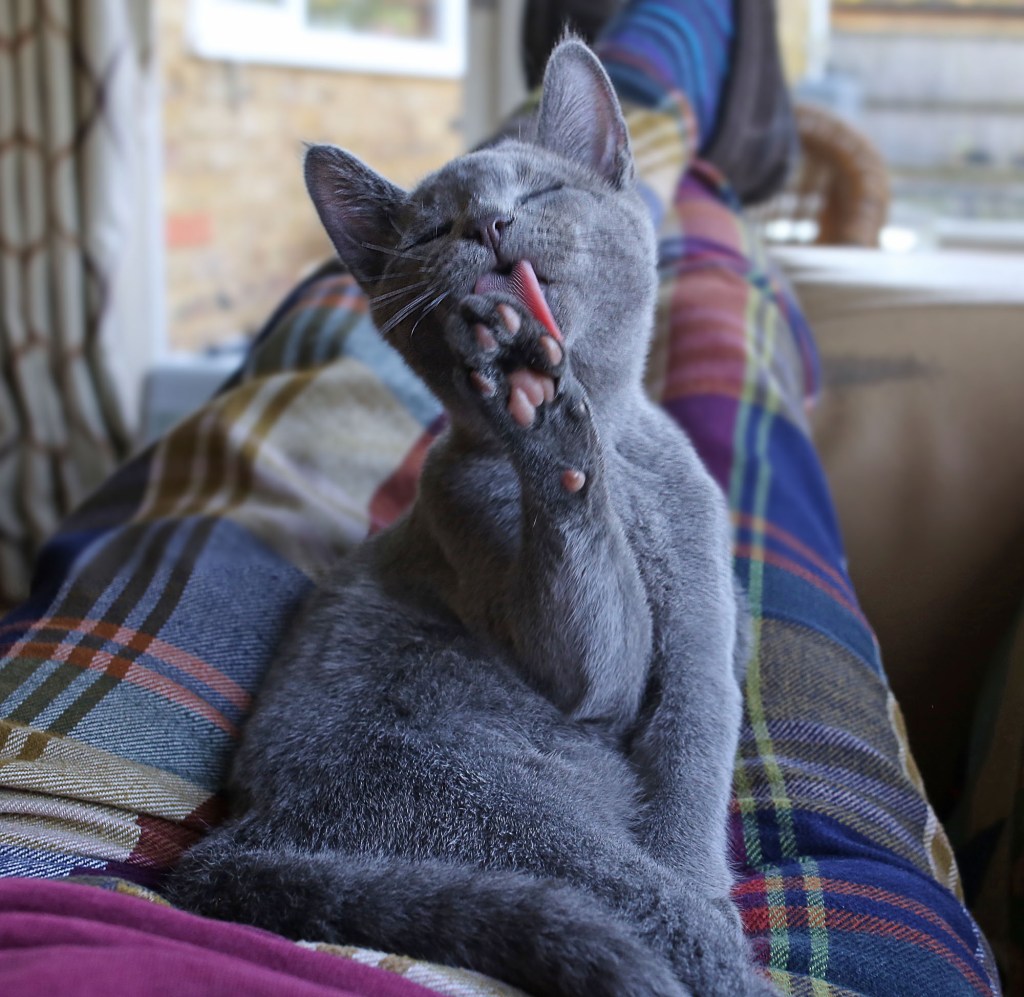 Últimamente le acompaña otro ruso azul llamado Georgi que llegó al hogar de los Saunders en abril de 2018. “Su alter ego en las imágenes es bastante travieso”, dice el artista. “Su mentor le suele llama ‘G’, pero tampoco intenta inculcarle modales”.