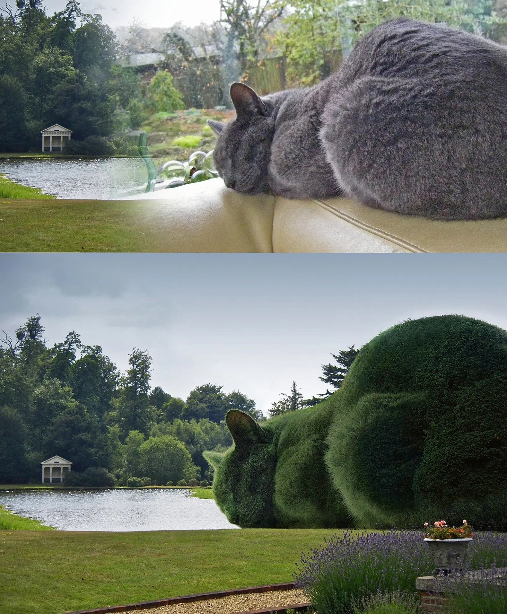 Desde hace unos años aparecen en Internet curiosas imágenes de gigantescos gatos “topiarios” o, mejor dicho, gatos realizados en poda artística. Siempre nos habían intrigado, pero no les habíamos dado mayor importancia hasta que una amiga nos mandó una foto especialmente atractiva y decidimos indagar un poco más.