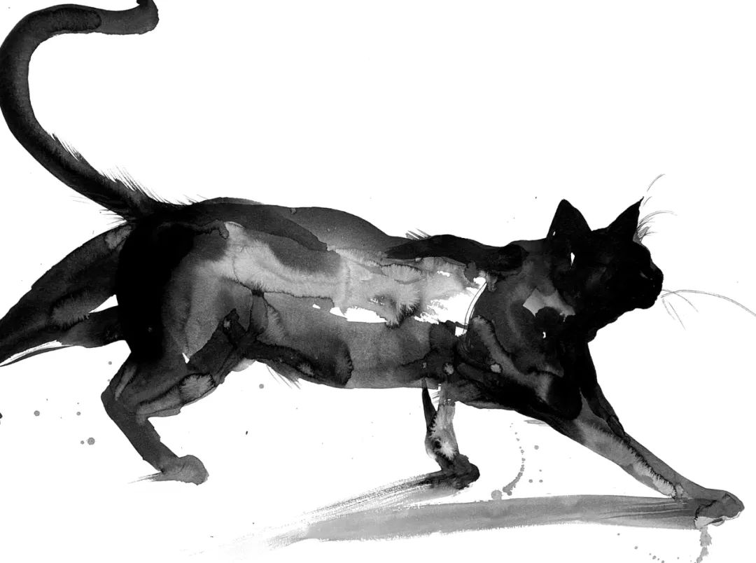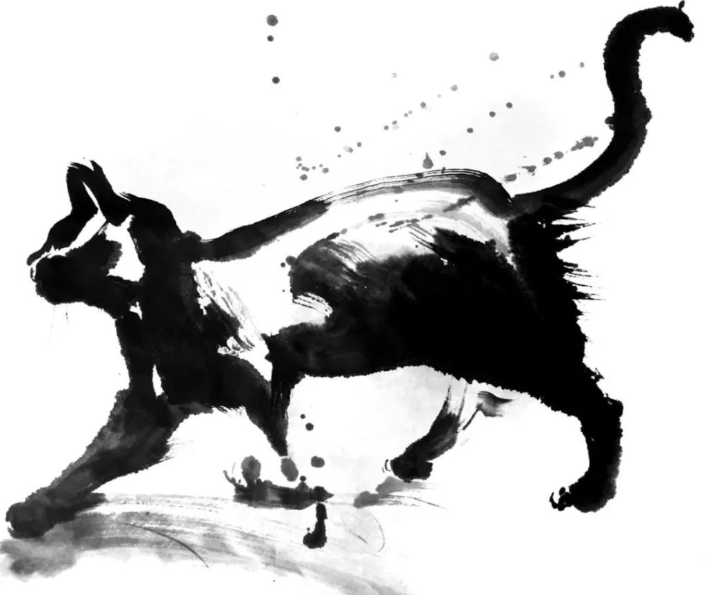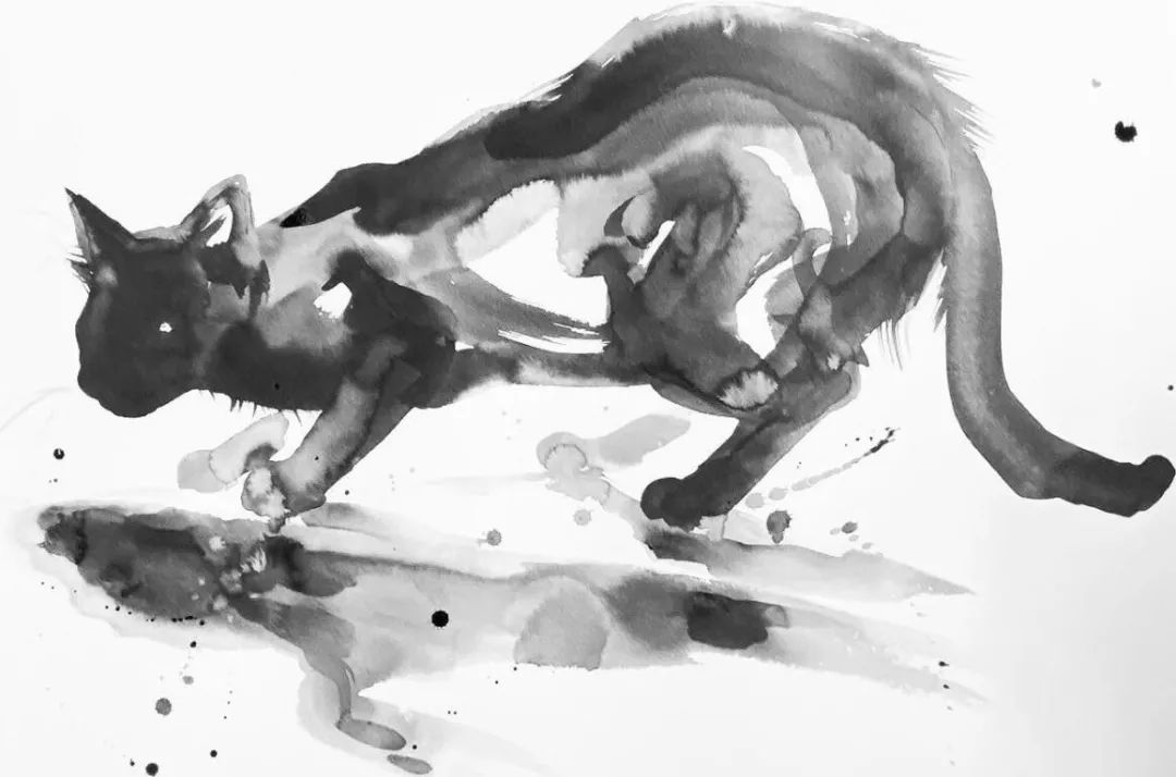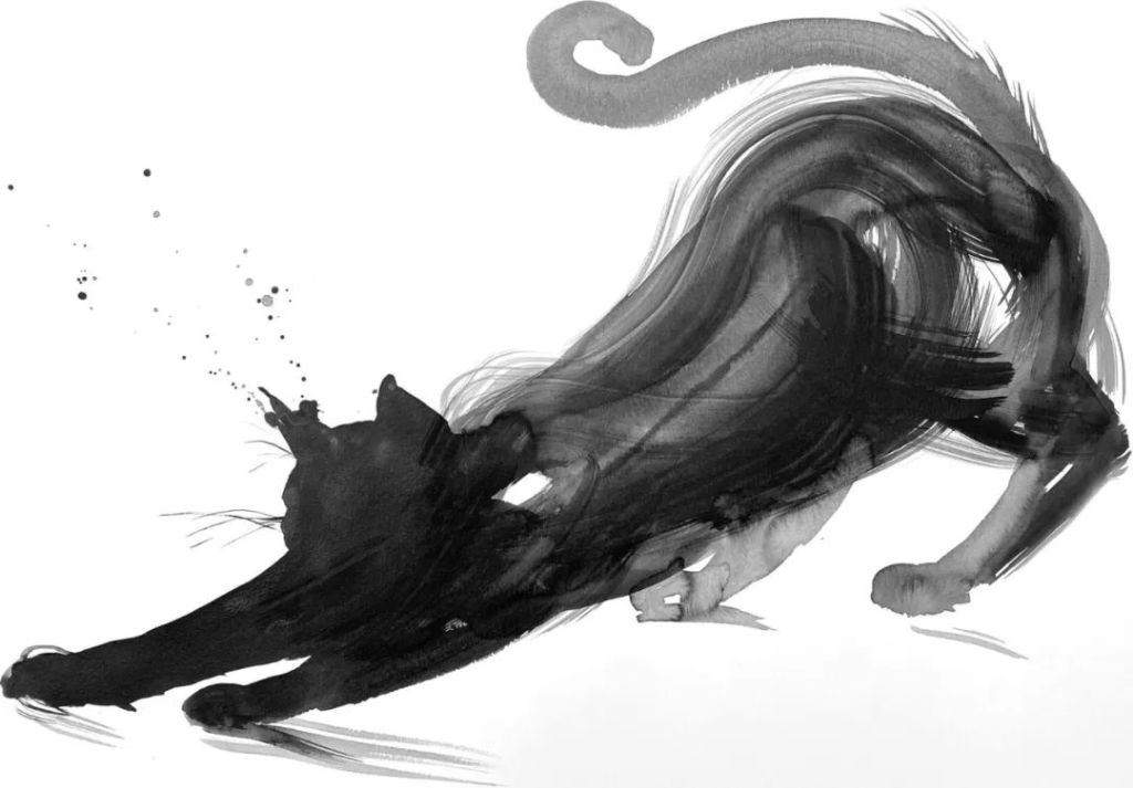 Esa serie se llamó “Jumping Kittens” (Gatitos saltando) y no tardó en transformarse en el libro “Ink Kittens” (Gatitos de tinta), publicado el 21 de agosto de 2020 con 38 dibujos de gatos en diversas posiciones realizados con unas cuantas pinceladas. “Solo utilicé tinta negra para sumi-e (una técnica de dibujo monocromático) y dos pinceles de caligrafía para reproducir a mi amigo Tux. Tengo la impresión de que un gato aporta energía a mis proyectos, movimiento a mi pincel, y tranquilidad a mi vida”.