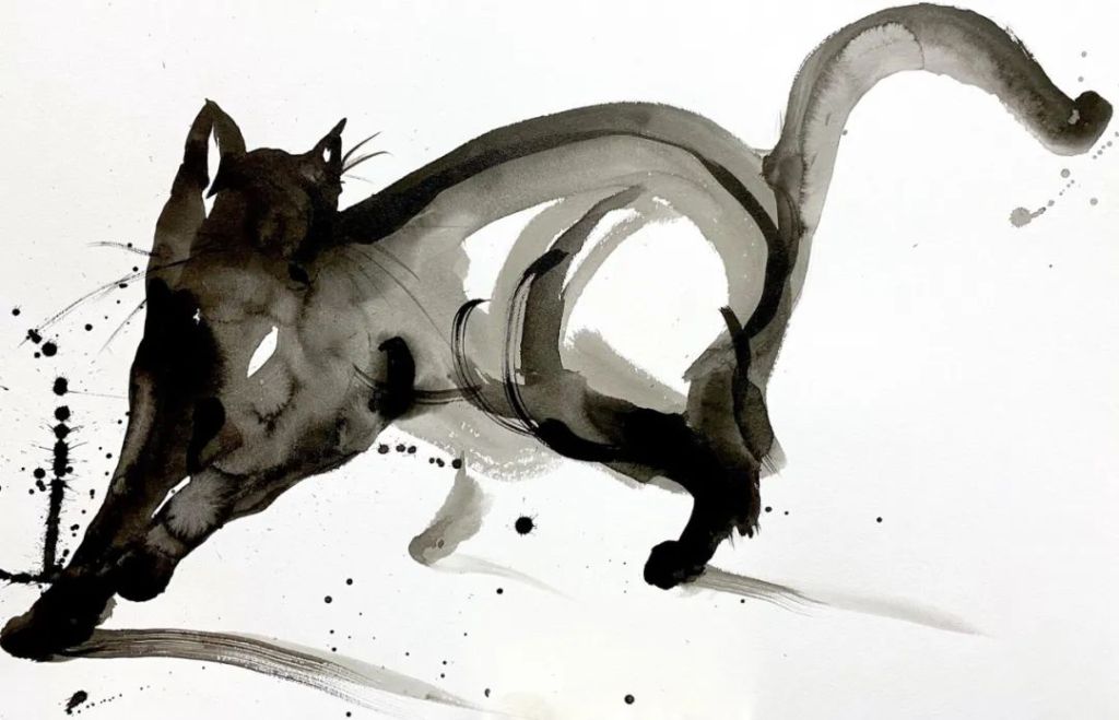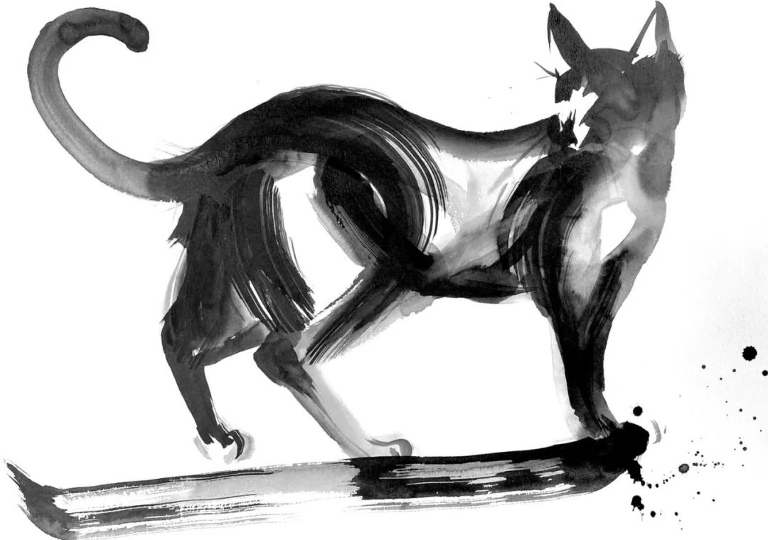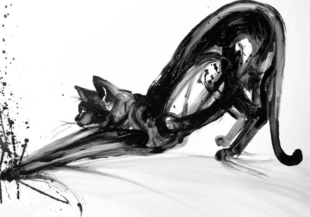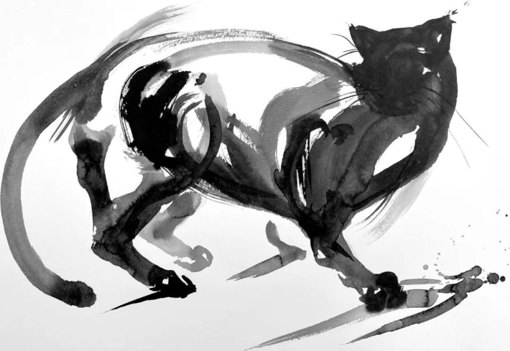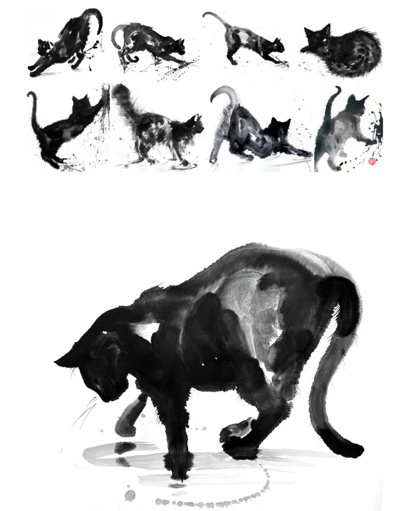 La artista sinoamericana Anita Yan Wong ha dedicado dos libros de dibujos a los gatos utilizando un proceso muy parecido al de la caligrafía china que, a pesar de su aparente sencillez, requiere una larguísima práctica hasta conseguir trazos perfectos.