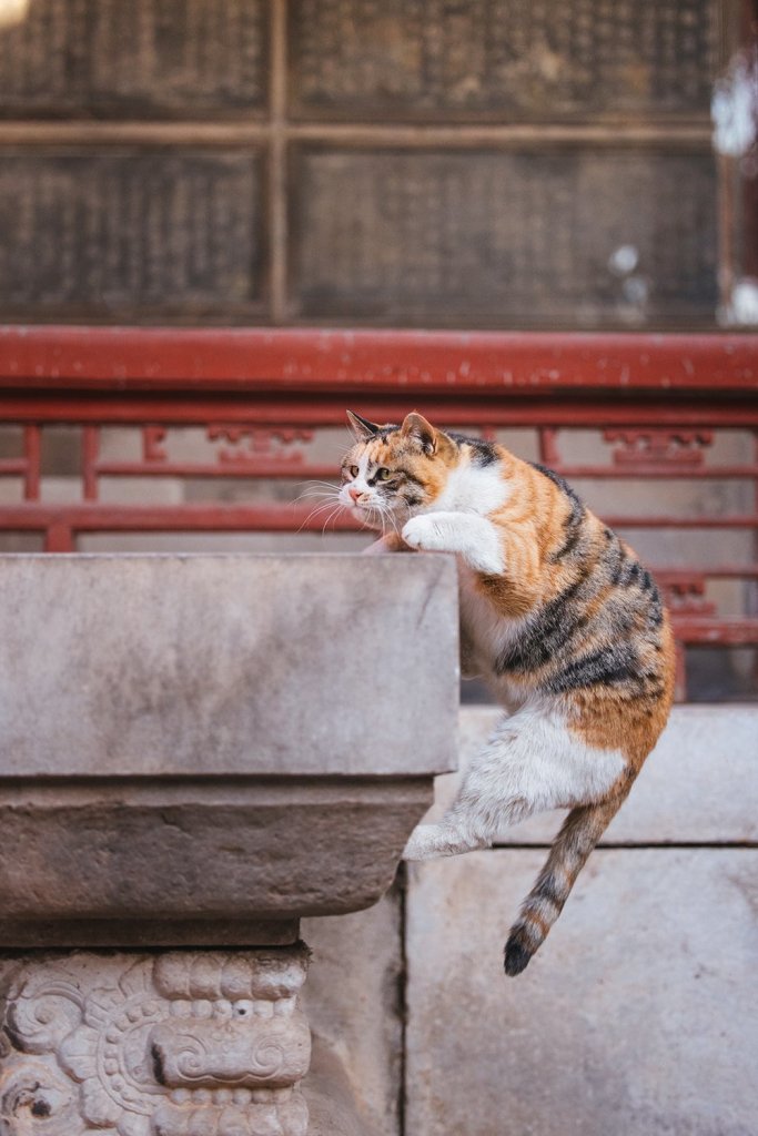 Hace tres años, en concreto el día de Año Nuevo chino, publicó una colección de fotografías de gatos saltando en tejados titulada “Saltando de 2019 a 2020”, y más recientemente, el libro “Gatos de las cuatro estaciones”, el paso siguiente al calendario de 2020 con 400 fotos. Ese mismo año había publicado otro libro con unas cien fotos de gatos realizadas en Pekín, muchas de ellas en la Ciudad Prohibida y en los hutong (las callejuelas de la gran ciudad).