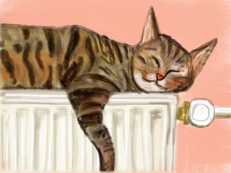 Además de pintar a la diseñadora, David Hockney también dedicó algún que otro cuadro a los gatos, como “El gato de Patrick Steen en un radiador”, aunque no está firmado y nos preguntamos si realmente es suyo. Se sabe que simpatizaba más con los perros que con los gatos.