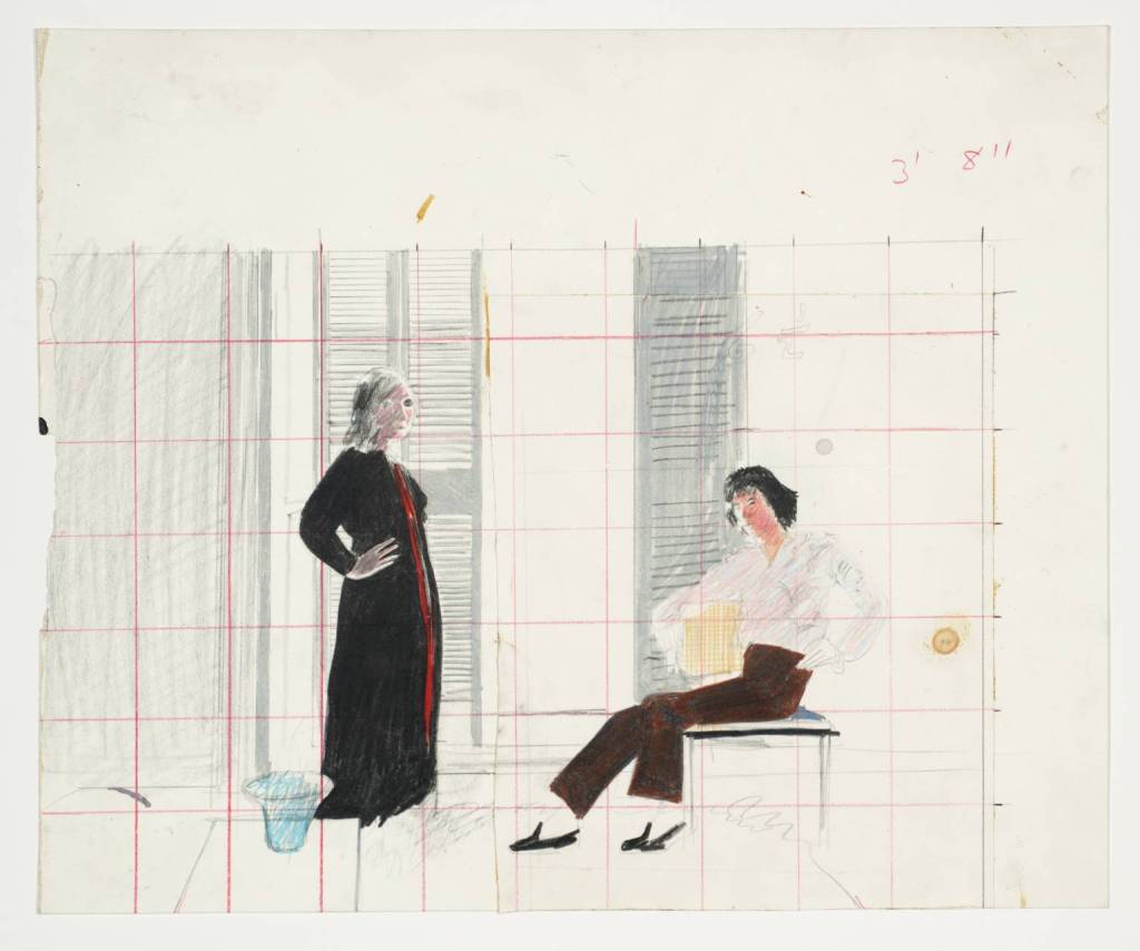 Conoció a David Hockney en 1968 en el mercado de Portobello y se convirtió en su musa. En palabras de la diseñadora: “Llamaba la atención, como siempre. Llevaba una chaqueta de pana y el pelo teñido de rubio. Nunca había imaginado que podría ser una musa. Me enorgullece ser parte de las series que David hizo en los setenta. También me dibujó para la portada de Vogue en los ochenta. No sabía posar, pero acabó siendo parte de mí”.