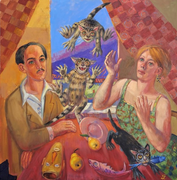 Queremos acabar esta entrada dando las gracias a los Amigos de Rafael Zabaleta, que nos han proporcionado todas las fotografías de los cuadros del pintor incluidos aquí. Para terminar, hemos encontrado un curioso cuadro titulado “Desayuno con Rafael Zabaleta”, realizado en 1922 por Dagnia Cherevichnik, nacida en Riga, Letonia, en 1974.
