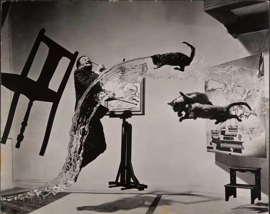 Pero siempre nos ha intrigado la famosa foto hecha en 1948 por el fotógrafo Philipe Halsman (Riga, 2 de mayo de 1906 – Nueva York, 25 de junio de 1979) titulada “Dalí Atomicus”, en la que todos los componentes, animales, persona y objetos están suspendidos en el aire. Los trucos ya existían, desde luego, pero eran mucho más complicados de realizar que en la actual época digital.