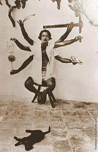 En las otras, los gatos son utilizados de simple atrezo, incluso en la foto en que Dalí tiene un siamés en el regazo.