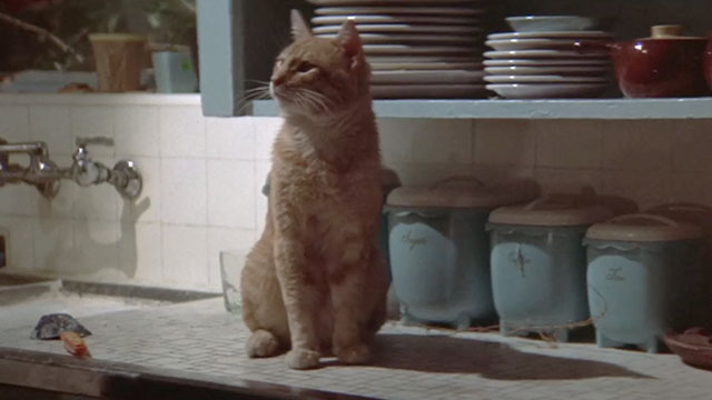 Pero queda otro misterio por aclarar, ¿a qué gato vemos en “Un largo adiós”? Algunos dicen que es Morris (https://gatosyrespeto.org/2019/11/07/el-gato-morris-una-estrella/), aunque nos extrañaría mucho porque ya tenía bastante con los anuncios de la comida felina 9Lives. Es muy posible que fuera uno de los gatos de Frank Inn, el domador del famosísimo Orangey de “Desayuno con diamantes”.
