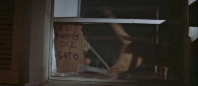 Esta última frase tiene una explicación: La película abre con Marlowe en un supermercado a las dos de la mañana buscando la marca de comida felina favorita de su gato, pero no queda. Regresa a casa con otra, y el gato – que no tiene nombre –, muy ofuscado, decide irse por “el porto del gato” (textual, como lo demuestra la foto).