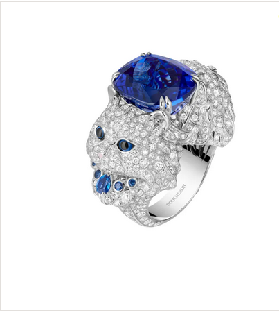 En esa época, la mayoría de las joyas con gatos suelen ser broches, con la excepción de algún anillo. La moda se trasladó a Francia, donde sigue vigente como puede verse en la web del famoso joyero Boucheron, casa fundada en 1858. Basta entrar en su página y teclear “alhajas con animales” (“jewels with animals” o “bijoux avec animaux”) y lo primero que aparece es la línea del gato Wladimir, del que mostramos una sortija.