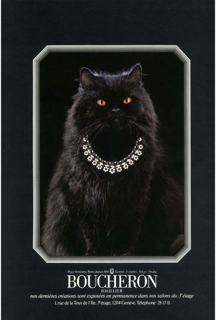Boucheron, sucursal de Ginebra, Suiza, también utilizó un magnífico gato persa negro para un cartel publicitario.