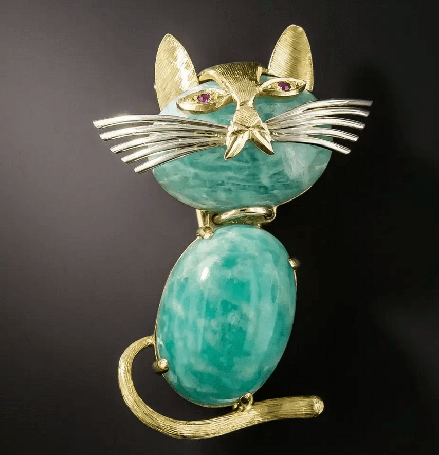 Cartier nunca fue muy dado a los gatos, se inclinaba más por los grandes felinos, pero la casa creó algún que otro broche. Este divertido gato verde entre ellos.
