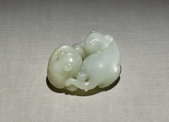 En representación de China incluimos dos colgantes de jade de la dinastía Qing (o King) de los siglos XVIII o XIX. En ese país, el gato representa la longevidad, y los colgantes con gato eran regalos de cumpleaños bastante habituales.