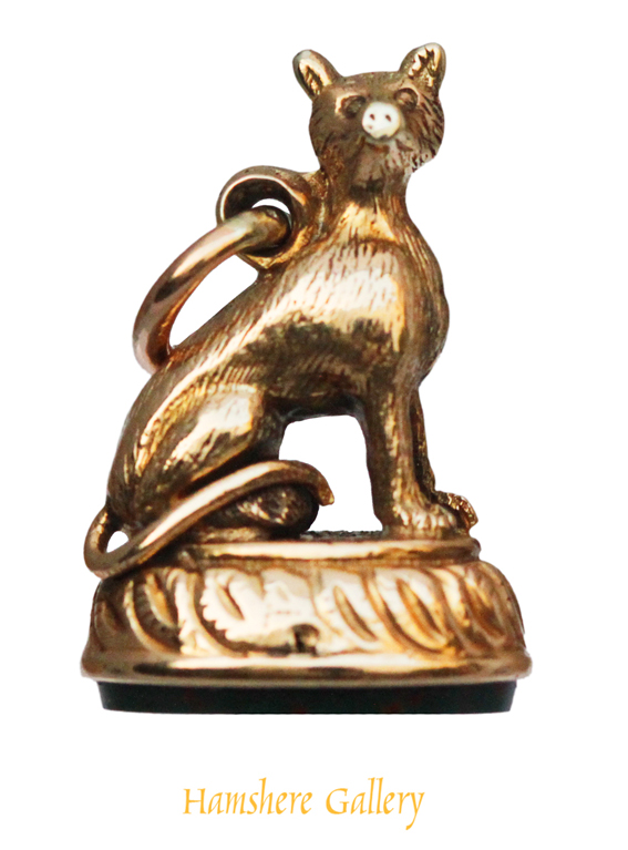 De Egipto pasamos a Persia con un precioso gato colgado de una cadena de oro del siglo XIV vendido en la casa de subastas Christie’s Nueva York por 2.600 dólares. ¿Se atreverá el comprador o compradora a llevarlo? A modo anecdótico añadiremos que las joyas de la Corona de Irán son consideradas la colección más brillante y más valiosa del mundo; se conserva en el Banco de Irán y puede visitarse.