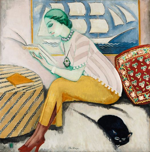 El peculiar estilo de Kees van Dongen, trazos casi ingenuos y fuerte colorido, se puso muy de moda al acabar la Primera Guerra Mundial, y la figura femenina delgada, de labios muy rojos, se convirtió prácticamente en su firma. Pero no solo pintó mujeres al óleo, también paisajes a la acuarela y un sinfín de dibujos. Asimismo, algún gato que otro, aunque no muchos.