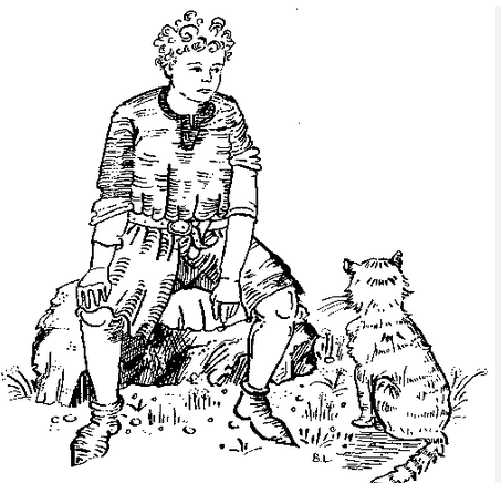 Al despertarse, Hans no sabía dónde estaba, pero echó a andar, decidido a conseguir un caballo. Al poco se cruzó con una pequeña gata atigrada que le preguntó amablemente dónde se dirigía. Hans, tristemente, le respondió que no podía ayudarle, pero la gata insistió; sabía que deseaba tener un caballo y le propuso un trato: “Acompáñame, sé mi fiel criado durante siete años y tendrás el caballo más bello que jamás hayas visto”.
