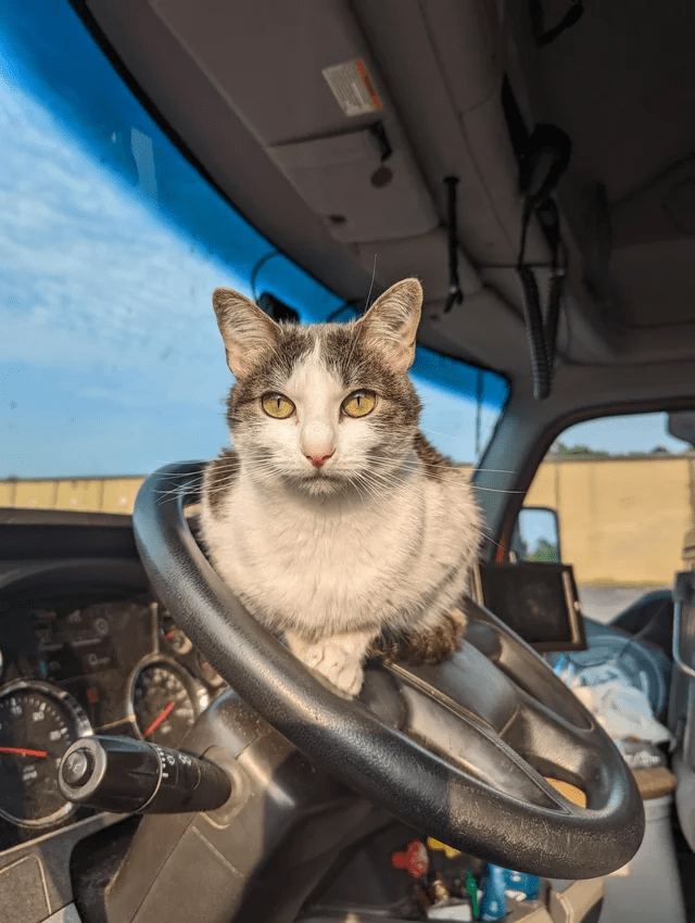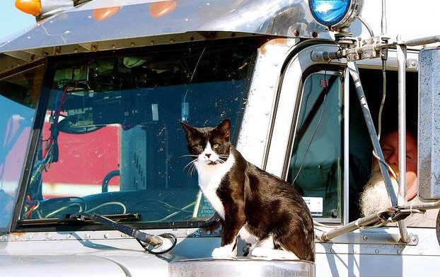 No es broma, hay gatos camioneros, o quizá deberíamos decir que hay camioneros que viajan con sus gatos. No sorprende a nadie ver a un perro bajar de la cabina de un enorme camión, pero… ¿un gato? Bueno, para empezar, no bajan de la cabina a menos que lleven un arnés; como contaremos después más de un camionero se ha vuelto loco buscando a un gato que se ha escapado en una parada.