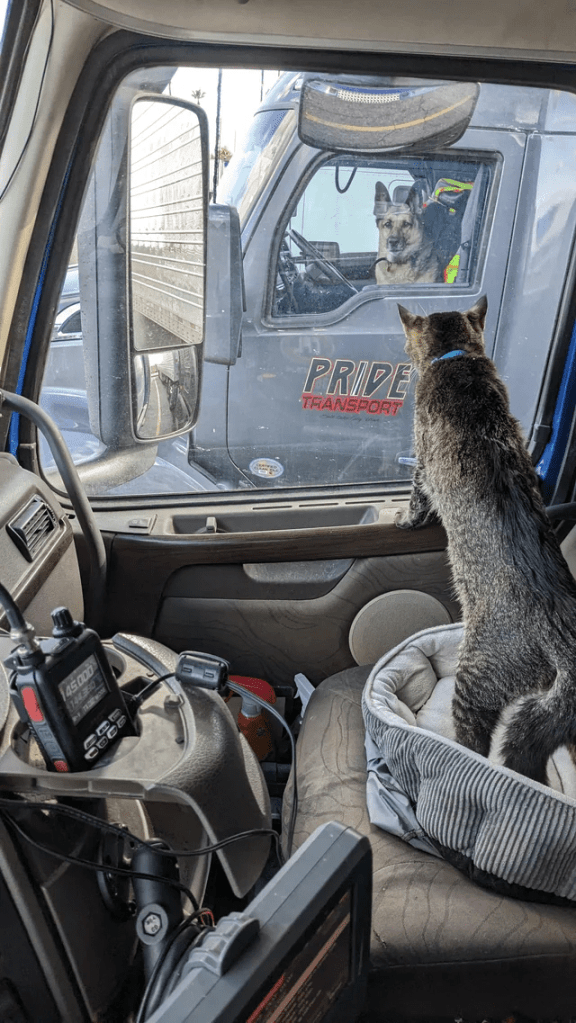 Muchos camioneros recorren cientos de kilómetros solos, durmiendo en aparcamientos, algunos más cómodos que otros, pero no siempre hay duchas o una cafetería cerca. Por eso, algunos palian la soledad con un amigo de cuatro patas, perro o gato. Estamos seguros de que el compañero más habitual es el perro, pero según muchos camioneros, el gato tiene ventajas: ocupa menos sitio, no pide tanta atención, se le puede dejar solo en la cabina durante unas horas sin que se desespere…