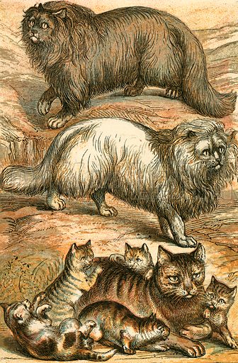 Sin embargo, Persia conocía al gato antes de la época sasánida. Los partos exportaban gatos persas de pelo largo, y algunos investigadores creen que el rey Cambises (530 – 523 a.C.) importó gatos de Egipto, de donde saldría la raza persa. Aunque esta explicación nos parece algo rebuscada por dos razones: primera, ninguna representación felina egipcia muestra gatos de pelo largo; segunda, el gato angora turco ya existía, y es una de las razas más antiguas.