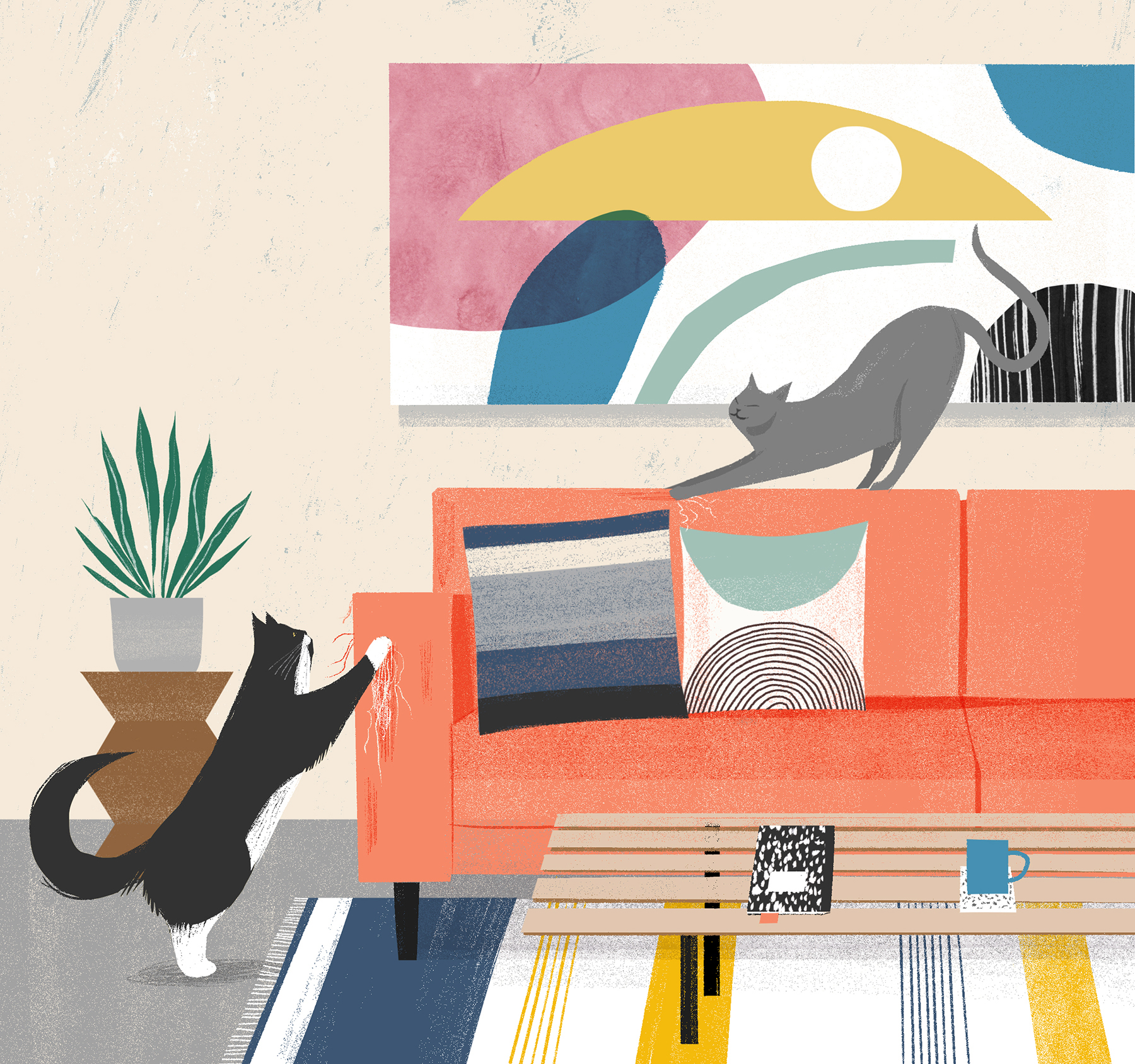 Algo nos dice que Sister es la gata blanca y negra que aparece en la portada del libro y unas cuantas ilustraciones. También intuimos que Sister ya no está con él porque en su web (https://www.samkalda.com/) – suponemos que está actualizada – indica que vive en una vieja casa con su marido y dos gatos, Arthur y Frances. Estos, en su papel de ayudantes en el estudio, se especializan en demoler plantas y resituar lápices.