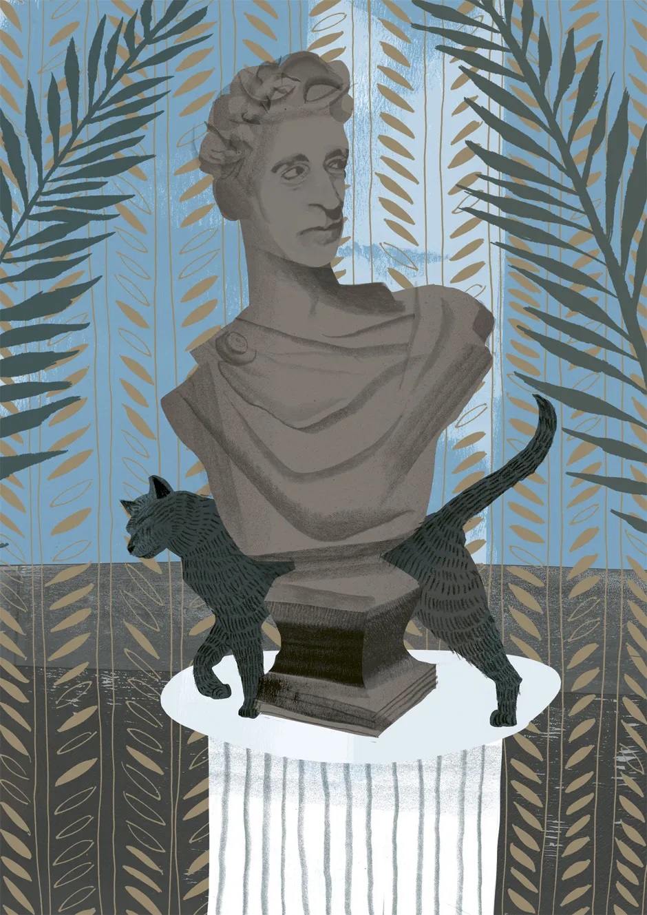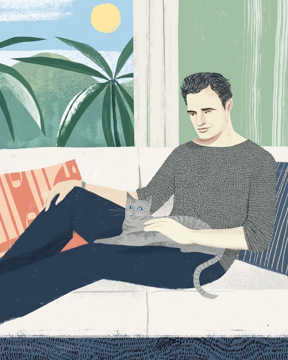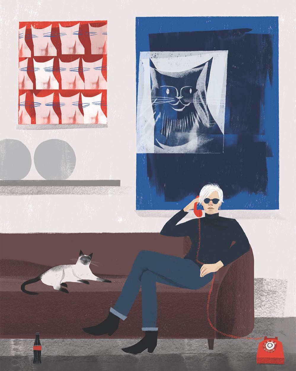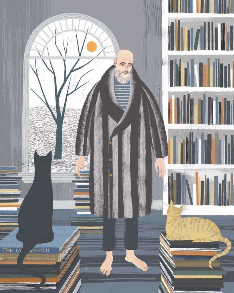 Entre los hombres citados están Samuel Johnson, Tsuguharu Foujita, Andy Warhol, Balthus, George Balanchine, hasta sumar treinta, cada uno de ellos con una ilustración muy representativa y llena de humor. Salpica el libro con algunas citas gatunas como esta de Doug Larson: “El gato podría llegar a ser el mejor amigo del hombre, pero jamás se rebajaría a reconocerlo”.
