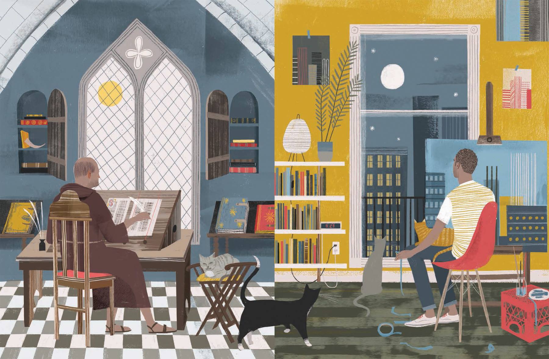 Tardó más de tres años en llevar a buen término el libro “De gatos y hombres”, tal como lo demuestra la ilustración del escritor, un gato que no es Sister y los papeles tirados en el suelo que colgó en su Facebook el 9 de abril de 2014. Al poco de su publicación en 2017 fue galardonado con importantes premios, el de la Asociación Americana de Ilustradores entre ellos. Ha publicado dibujos en el New York Times, el Wall Street Journal y Vogue, además de ilustrar varios libros. Ha expuesto en Nueva York, Los Ángeles y Berlín. Ha dado clases en la Universidad CUNY de Queens, y en la Universidad de Arte y Diseño de Minneapolis.