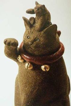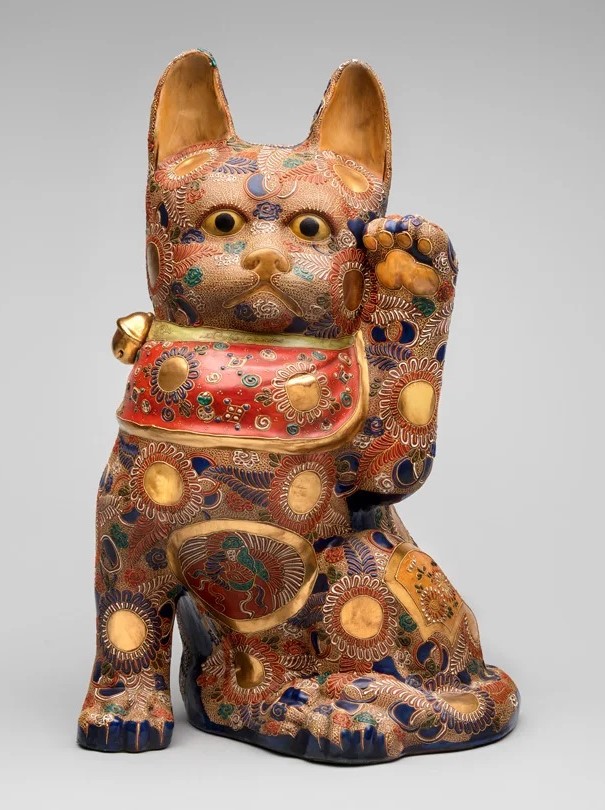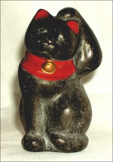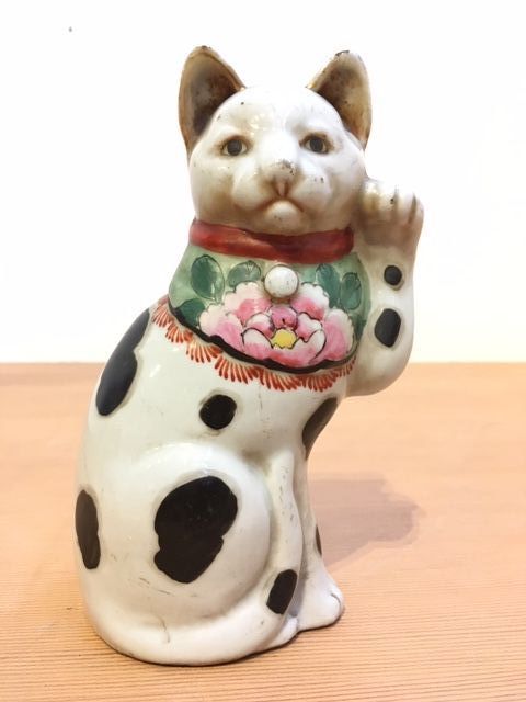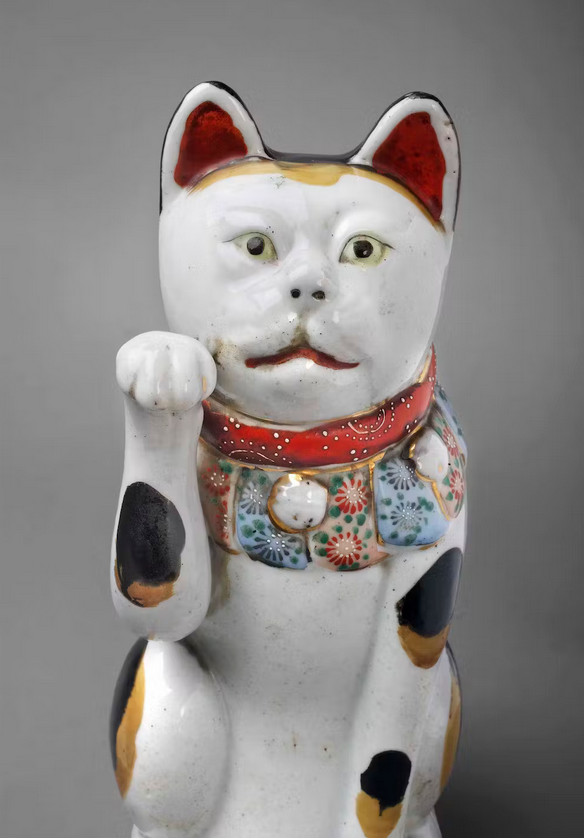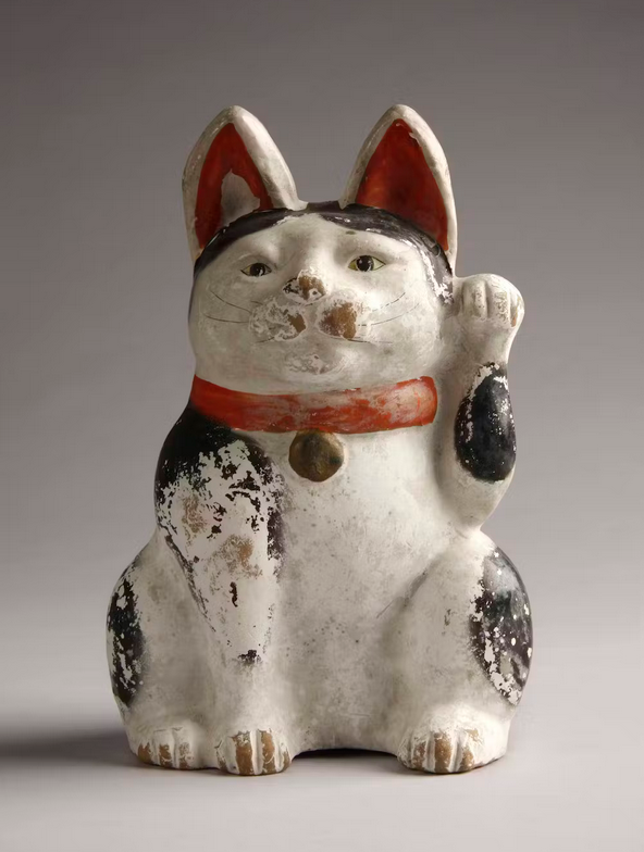 Los maneki-nekos no siempre alzan la misma pata. La derecha atrae el dinero y la buena suerte, mientras que la izquierda invita a los amigos y clientes. Al principio, la mayoría de estatuillas llevaban un cascabel o un babero colgado del cuello; actualmente es una moneda, y las pequeñas figuras se parecen muchísimo, sobre todo en el mal gusto, debido a la fabricación masificada a partir de moldes de yeso en la época Meiji (1868-1912). Poco a poco pasaron a representar la prosperidad económica en vez del bienestar espiritual.