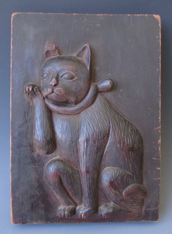 Una de las primeras referencias a un maneki-neko aparece en el Bukō nenpyō (una cronología del periodo Edo) en 1852. En 1876, época Meiji, se cita en un artículo de periódico, y hay claras evidencias de que el gato (ahora vestido con kimono) se distribuía en un santuario de Osaka en esa época. Un anuncio de 1902 indica que los maneki-nekos ya eran muy conocidos.