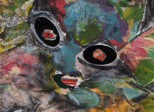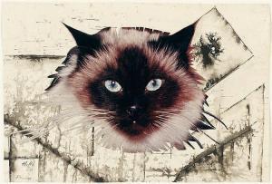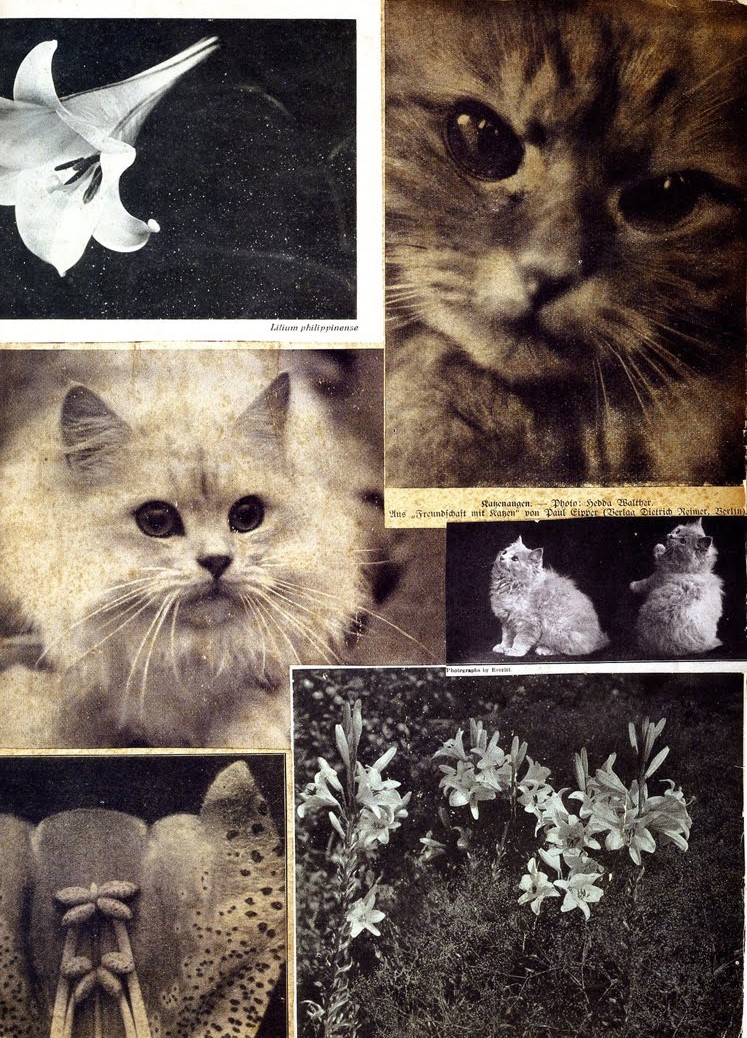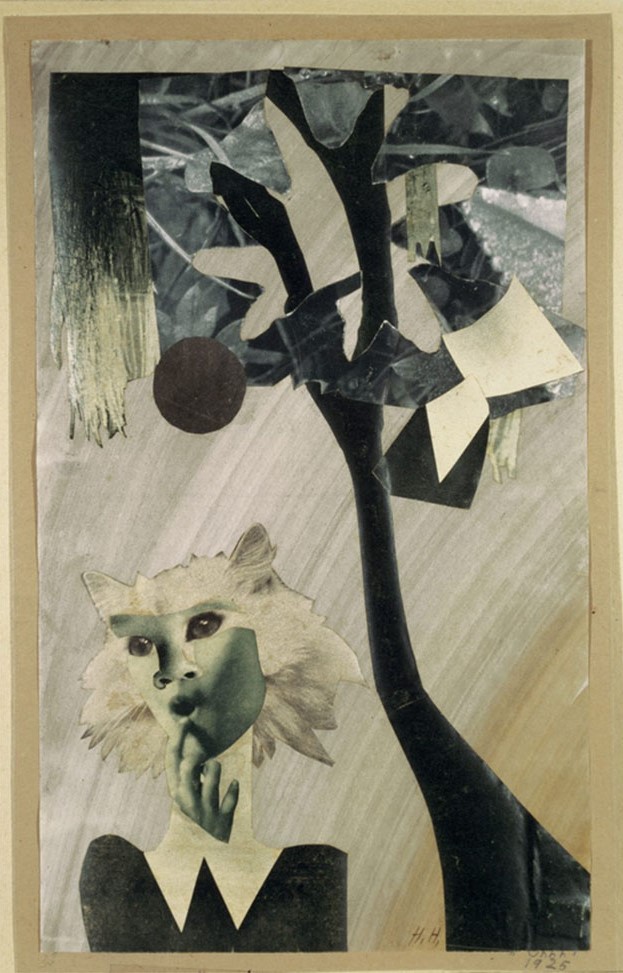 En este fotomontaje realizado en 1973, cinco años antes de que falleciera, Hannah Höch se desdobla a través de la mirada de su gato Panther. Aunque la obra de la artista no incluye a muchos gatos, los amaba profundamente. Cuarenta años antes, en 1933, se dedicó a hacer un álbum de recortes con 400 ilustraciones sacadas de revistas y periódicos. Entre sus favoritas están los desnudos femeninos, los niños y los gatos.