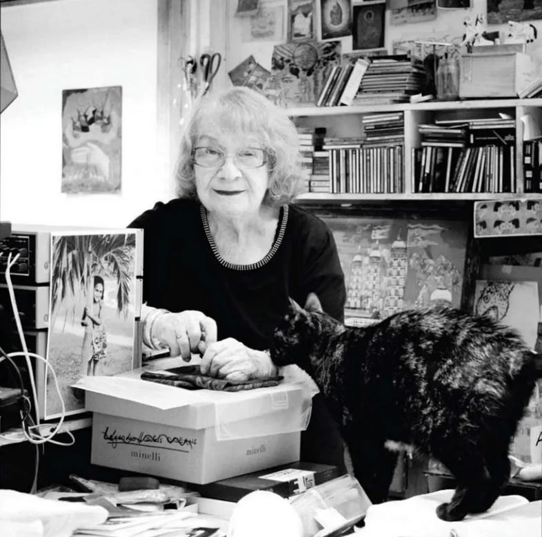 Ignoramos el nombre de la gata carey que la acompañó durante los últimos días de su vida en su casa estudio de París, pero por las fotos queda claro que estaban muy unidas. Falleció el 28 de diciembre de 2021. Hablando de las fotos de Weiss, Robert Doisneau dijo: “Escenas en apariencia inofensivas son plasmadas en el momento de desequilibrio, cuando se duda de lo habitualmente aceptado”.