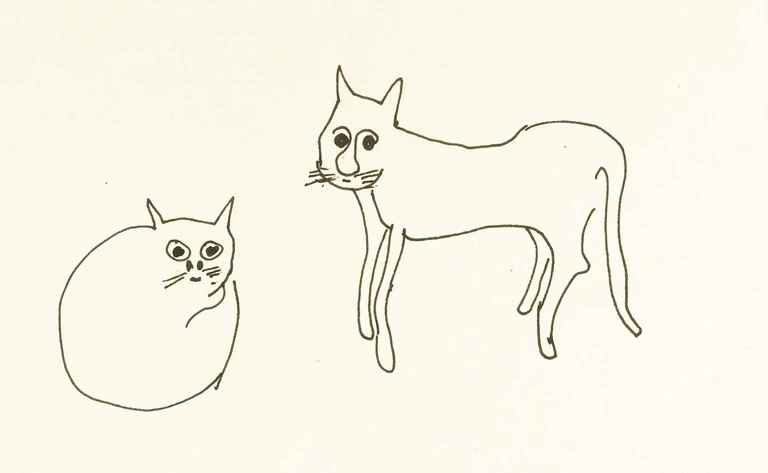 Pero John Lennon no solo tenía gatos, también los dibujaba. En su libro “Dibujos para Sean” incluyó a tres gatos: “Gato trepando”, “Gato sesteando” y “Gato ronroneando”.