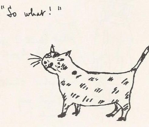 También dijo: “Me gusta ver un gato en movimiento. Un gato galopando es un bello espectáculo. Basta con mirarlo cruzar la calle como un rayo, mientras le maldicen los conductores de coches y autobuses, evitando la bicicleta del repartidor de la carnicería hasta alcanzar la otra acera sano y salvo para colarse debajo de la verja de su casa”.