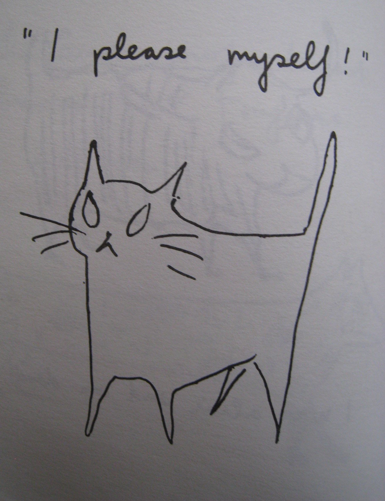 Stevie Smith escribió un poema acerca de un gato titulado “The Galloping Cat” (El gato que galopa). Forma parte del libro “All the Poems by Stevie Smith” (Todos los poemas de Stevie Smith), publicado en 2016, pero no hemos podido saber si se publicó en otra colección en vida de la autora. Es un poema muy curioso: un gato de lo más especial, y de no muy buen carácter, se queda calvo después de cruzarse con un ángel. Hemos respetado la división original de los versos, también la puntuación. Dice así: