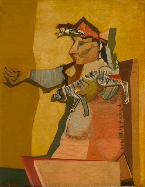 ¿Por qué fue tan vertiginosa la caída de los Robert, por qué dejo de gustar su pintura? Contemporáneos suyos como Keith Vaughan, John Piper y John Craxton (https://gatosyrespeto.org/2017/09/14/los-gatos-cretenses-de-john-craxton/) siguieron teniendo éxito y han sido objeto de grandes retrospectivas en diversas ocasiones, pero Colquhoun y MacBryde estuvieron prácticamente olvidados hasta 2014, cuando las Galerías Nacionales de Escocia les dedicaron una exposición. A pesar de que Colquhoun no pintó muchos cuadros con gatos, el escogido para la portada del catálogo (con más de 90 ilustraciones) es el de una mujer sentada con un gato.