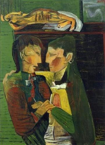 A ambos les concedieron una beca para viajar a Francia e Italia entre 1937 y 1939. De regreso al Reino Unido, el primero se unió al Cuerpo Médico del Ejército como conductor de ambulancia. Volvió a Londres en 1941 después de resultar herido y se reunió con MacBryde. Compartieron casa con John Minton, y a partir de 1943 con Jankel Adler (https://gatosyrespeto.org/2018/09/13/gatos-y-un-pintor-ignorado-jankel-adler/). En esta entrada, publicada en 2018, nos preguntábamos si el pintor alemán no había compartido casa con alguien que tuviera gatos… Los dos Robert tenían uno o dos gatos, aunque de los dos, solo Colquhoun los incluyó en sus cuadros.