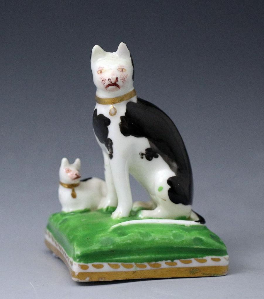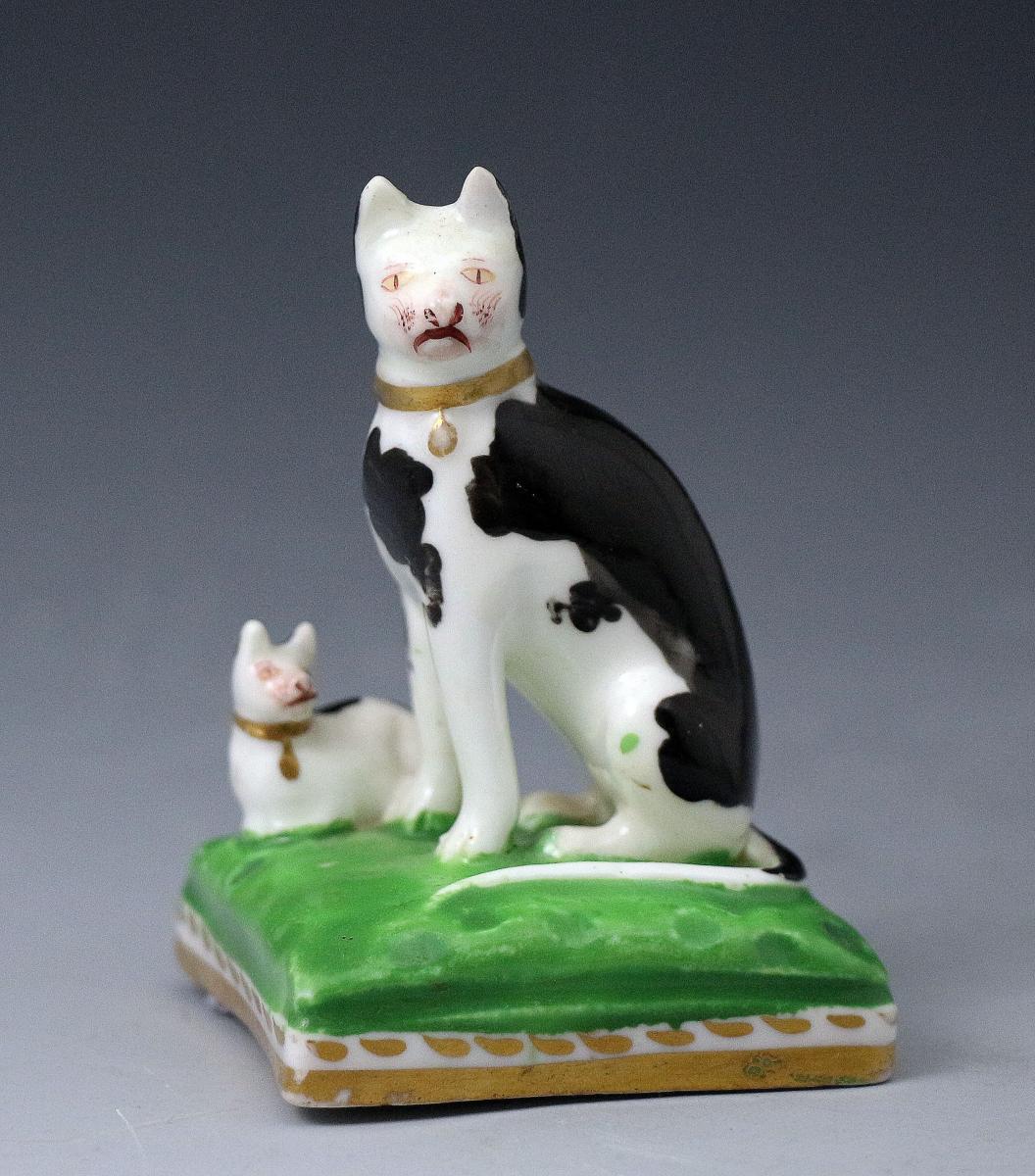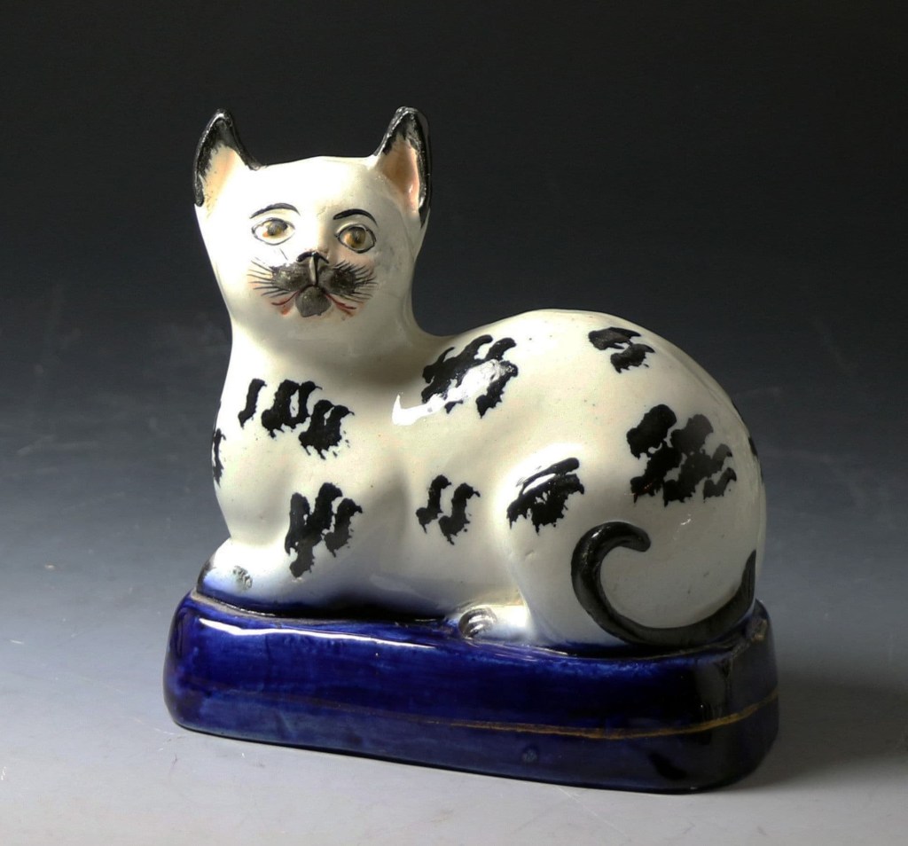 A mediados del siglo XIX, la famosa cerámica de Staffordshire se lanzó a producir figuritas de animales, y las de gatos eran muy populares. Posiblemente se deba a que, durante la era victoriana, los gatos empezaron a ser aceptados como animales domésticos, aunque aún tardaría en llegar la primera pareja de gatos siameses a Londres (1884) y en celebrarse el primer “Cat Show” (Exposición de gatos) organizada por Harrison Weir en 1871.