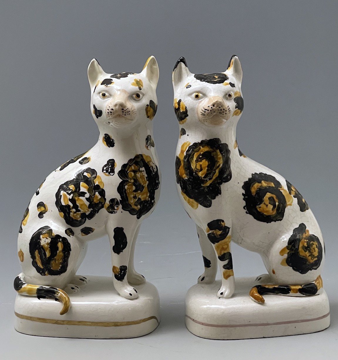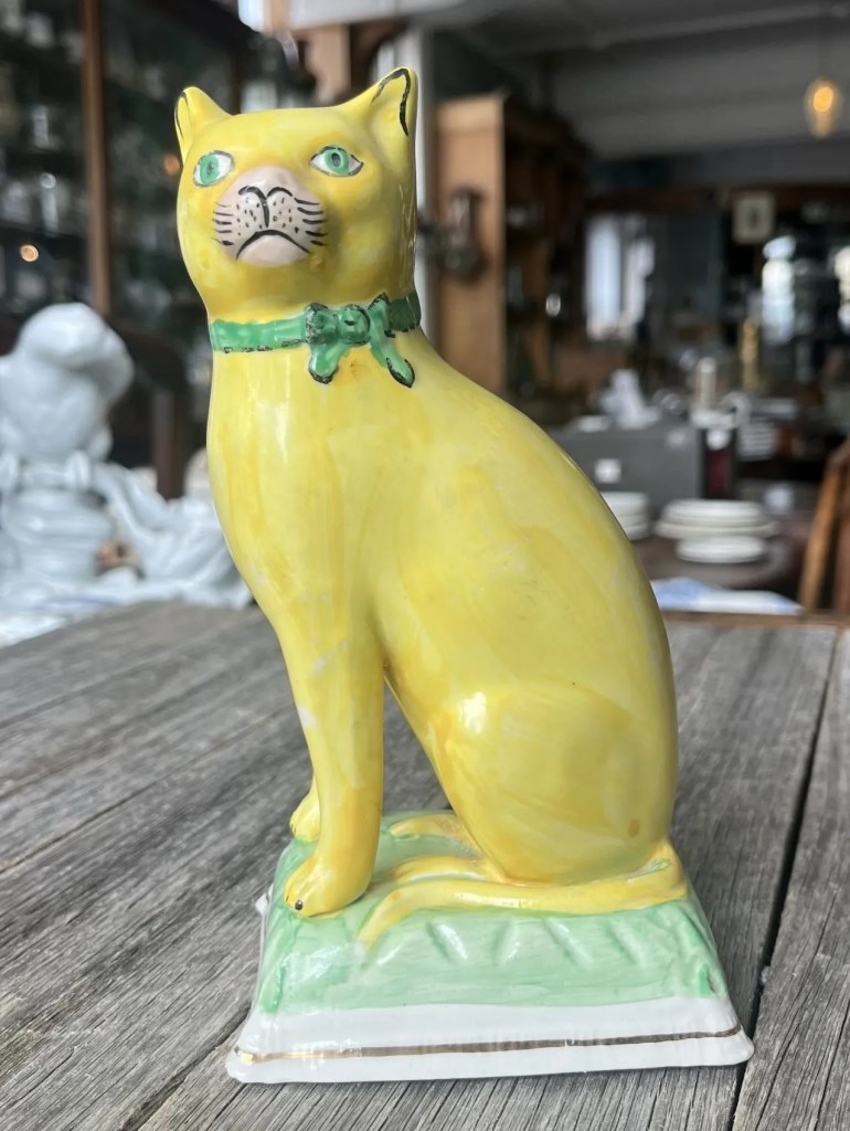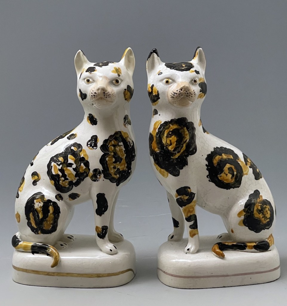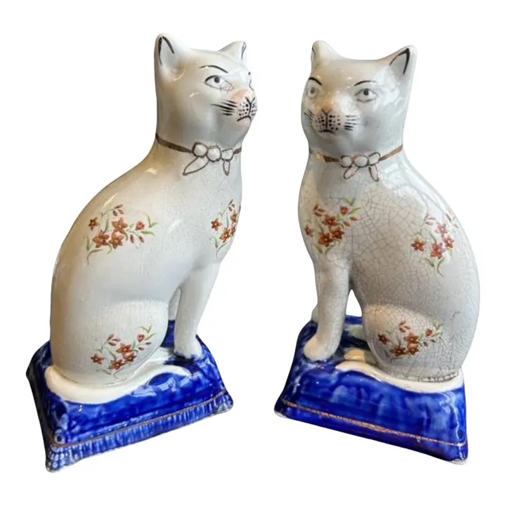 A mediados del siglo XIX, la famosa cerámica de Staffordshire se lanzó a producir figuritas de animales, y las de gatos eran muy populares. Posiblemente se deba a que, durante la era victoriana, los gatos empezaron a ser aceptados como animales domésticos, aunque aún tardaría en llegar la primera pareja de gatos siameses a Londres (1884) y en celebrarse el primer “Cat Show” (Exposición de gatos) organizada por Harrison Weir en 1871.