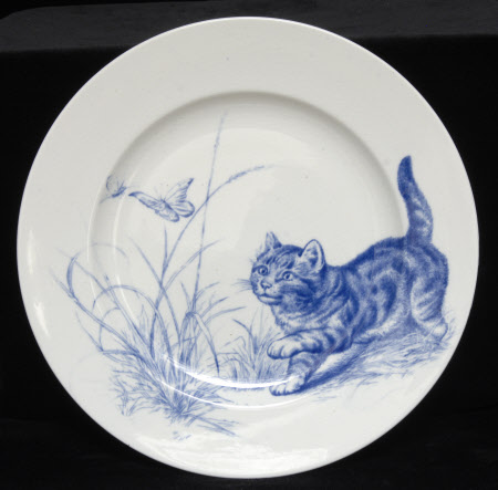 Entre las empresas ceramistas, una de ellas se dedicó más que las otras a la creación de figuras gatunas e incluso produjo vajillas con gatos dibujados en los platos. Conocida hoy en día como Mintons, fue fundada por Thomas Minton en 1793 sobre todo para la creación de vajillas de color crema o blancas con dibujos azules pintados a mano o realizados con calcomanía. Unos setenta años después, ya con la tercera generación Minton, lanzaron un juego de doce platos con motivos gatunos que disfrutaron de un enorme éxito durante unos veinte años.