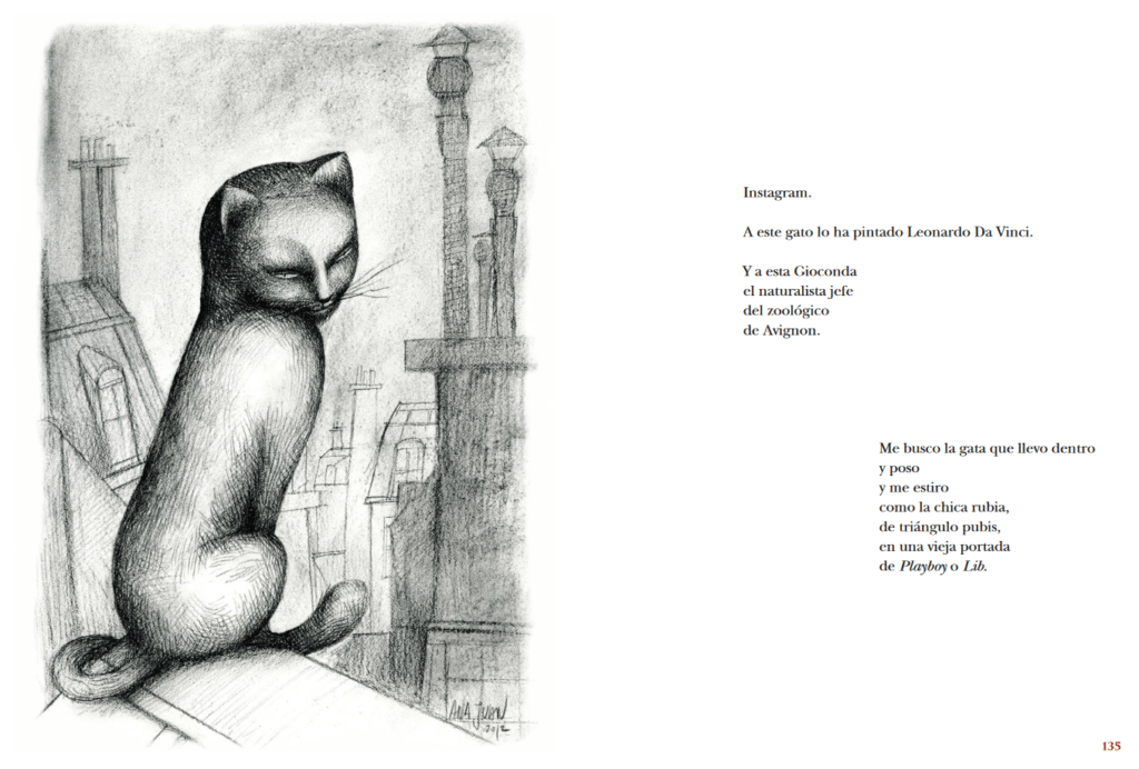 Una vez dicho todo esto, añadiremos que Ana Juan no vive con gatos. En 2020 se publicó “La vida secreta de los gatos”, con texto de Marta Sanz (que sí tiene gatos: Ulises, Melusina, Miranda, Brumario, Simonetta y Calabardina, nombres más que apropiados) e ilustraciones de Ana Juan.