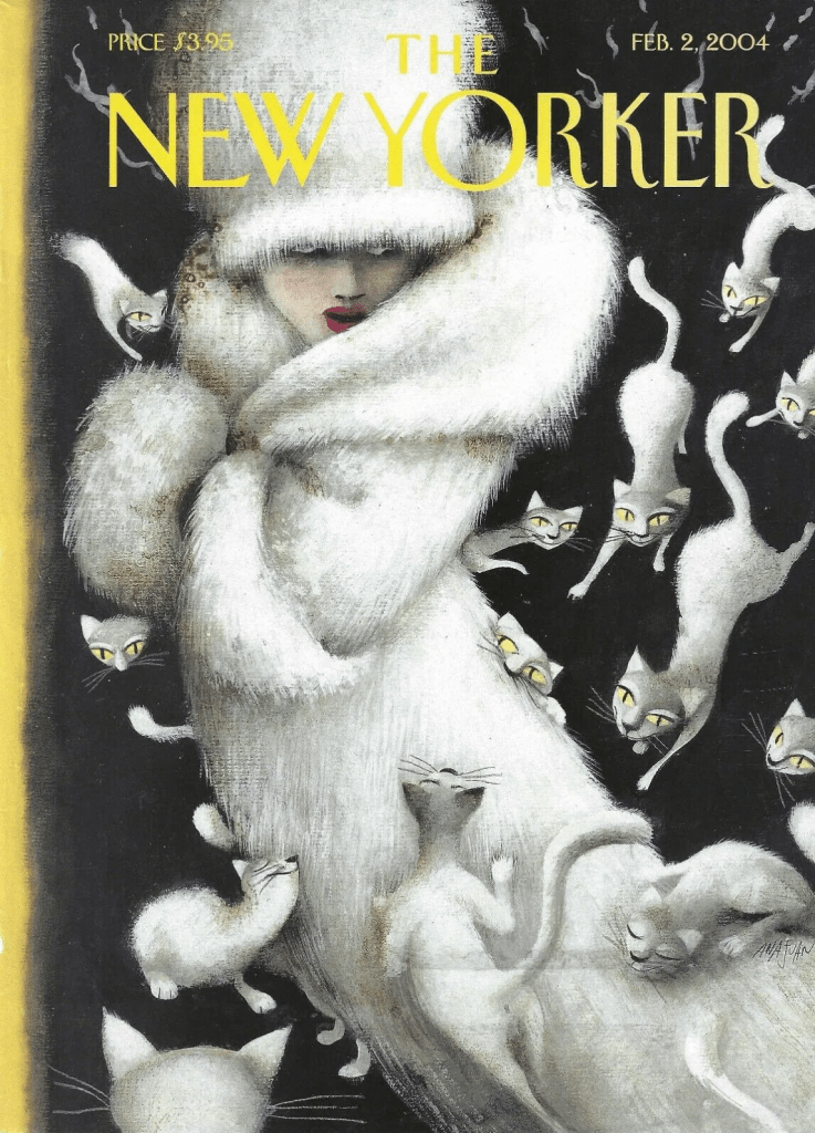 Le gustó y consiguió contactar con la ilustradora a través de Ceesepe, que ya había hecho una portada con ella. Por cierto, la editora actual de The New Yorker es Françoise Mouly. Y la tercera portada felina es muy reciente; se publicó en abril de 2024. En ella se ve a un gato entrenándose para cazar ratones en una pantalla digital.