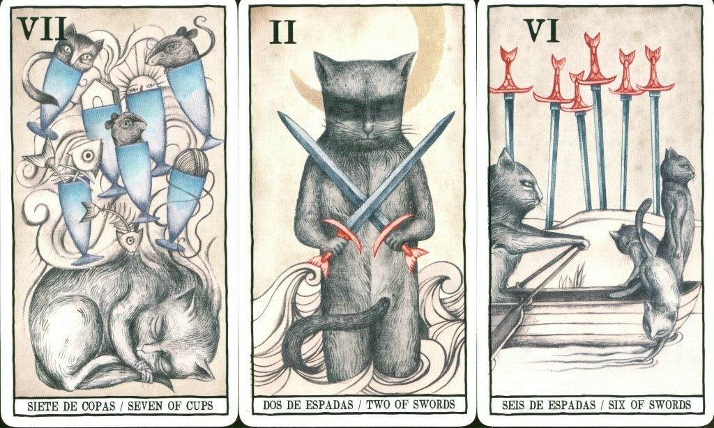 Hemos encontrado esta entrevista en la página de los naipes Fournier, pero lo más sorprendente es que no le pregunten a la artista por qué decidió hacer un tarot con gatos.