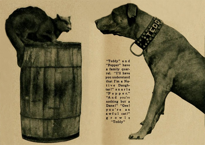 Según cuentan, la primera estrella gatuna se llamó Pepper y lo fue por casualidad. Nació debajo del suelo de madera de uno de los platós de los estudios Keystone en 1912 y se coló entre dos tablas en medio de una escena. Su hermano, que la seguía, asomó la cabeza y procedió a volver a esconderse, pero Pepper se quedó observándolo todo, y Mark Sennett, dueño y fundador del estudio, la mantuvo en la película. Un año después, Pepper coprotagonizó “A Little Hero” con Mabel Normand y Teddy el perro. Acababa de nacer una estrella. Los nombres de los tres aparecen en los títulos de crédito.