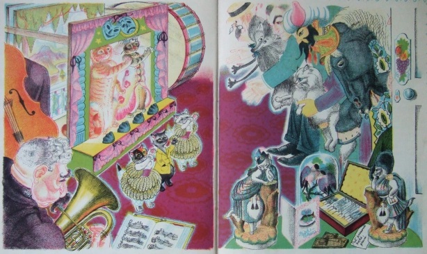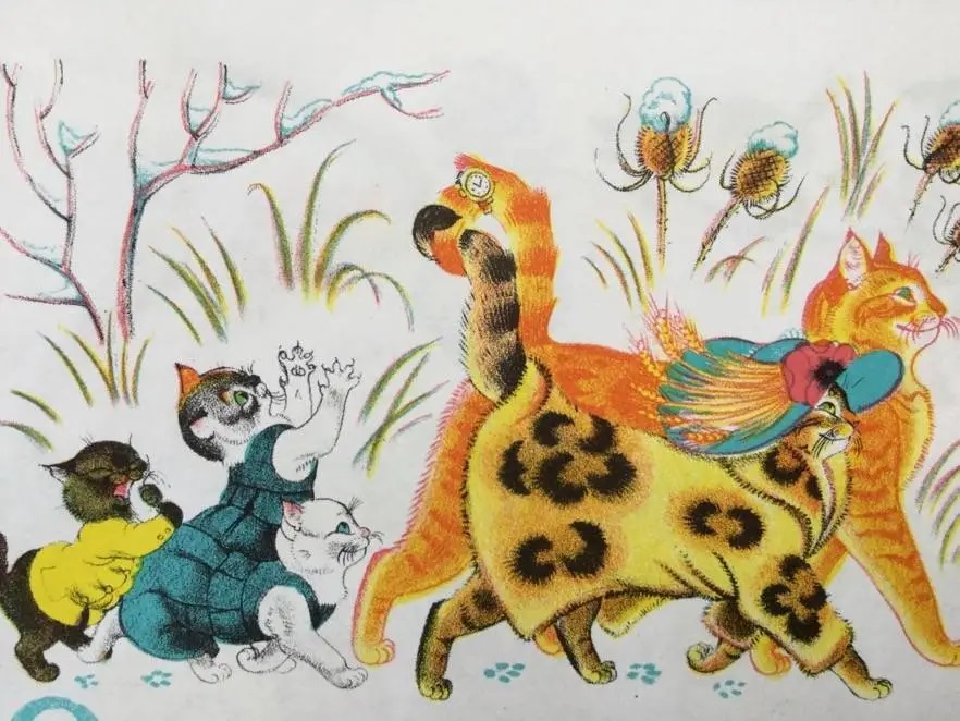 La autora creó un universo poblado de teteras con ojos y patas, focas que viven dentro de neveras, gatos ciclistas, gallinas que crían a gatitos, gatos que alimentan a corderos con biberones, caniches-nubes y mil cosas más. Todo está basado en una realidad muy británica distorsionada con mucho humor.