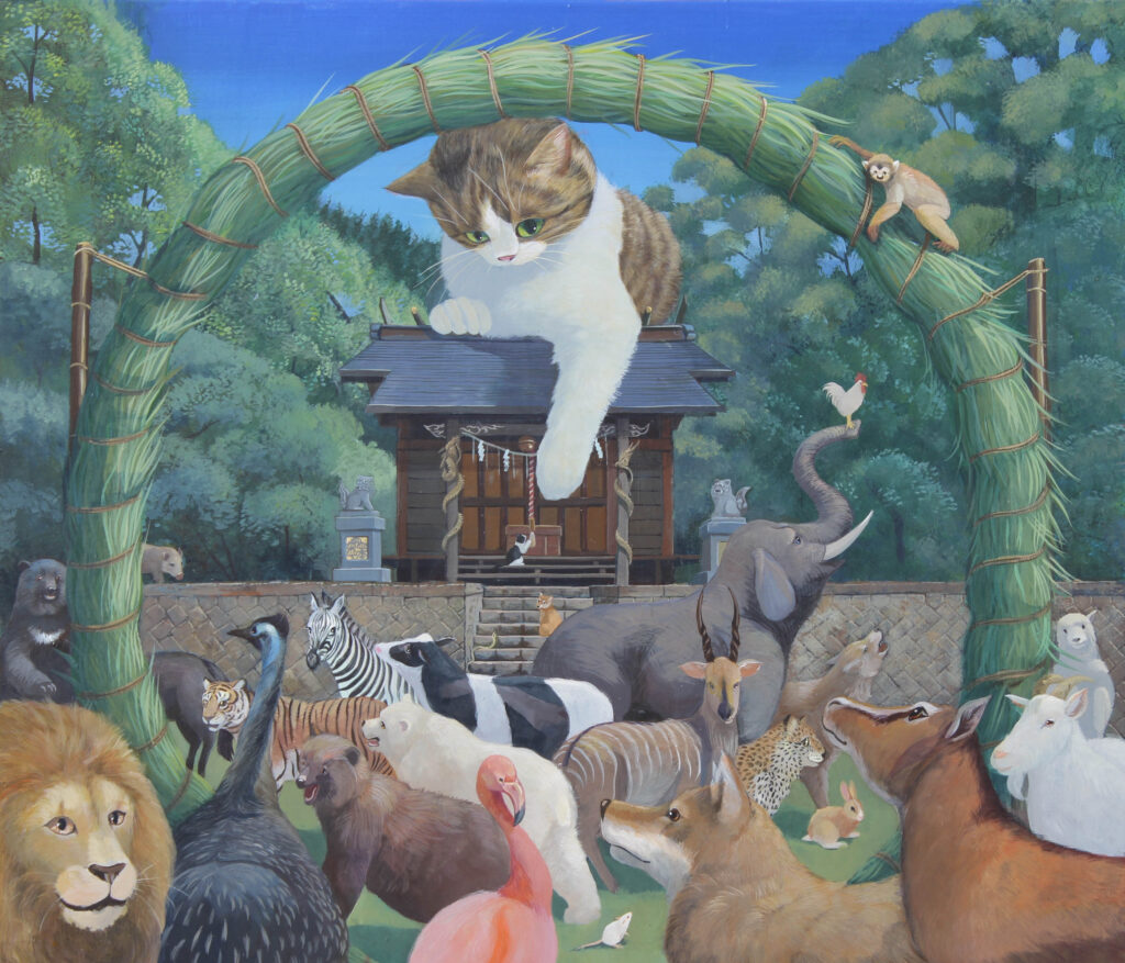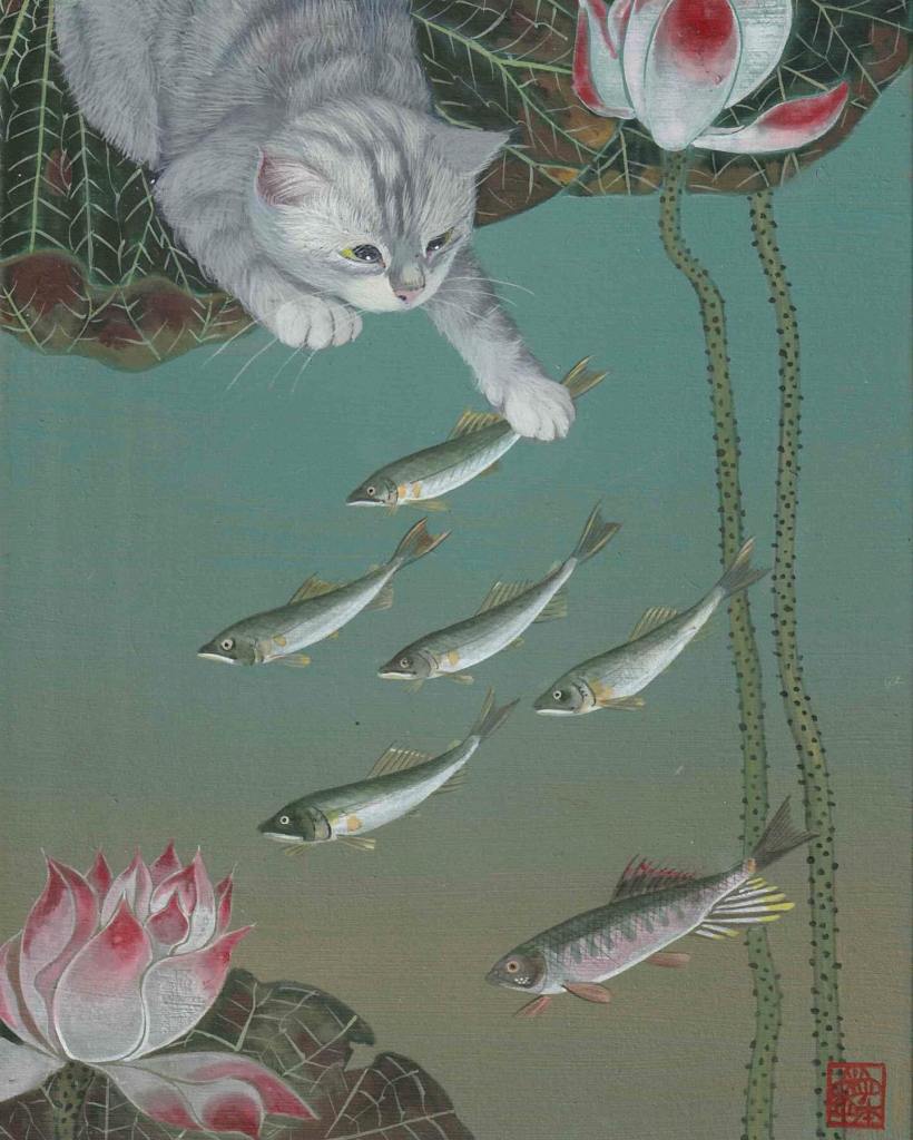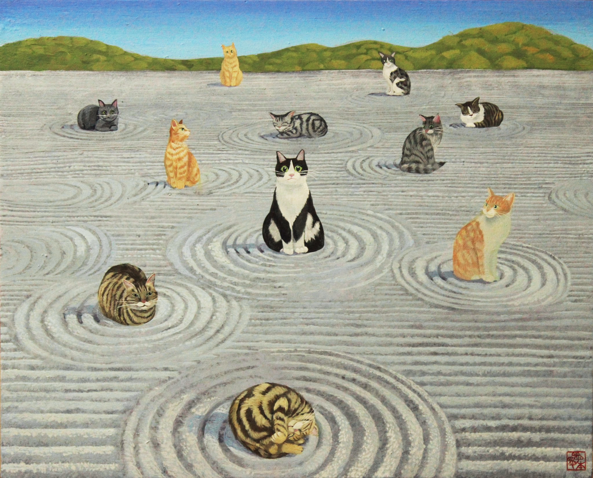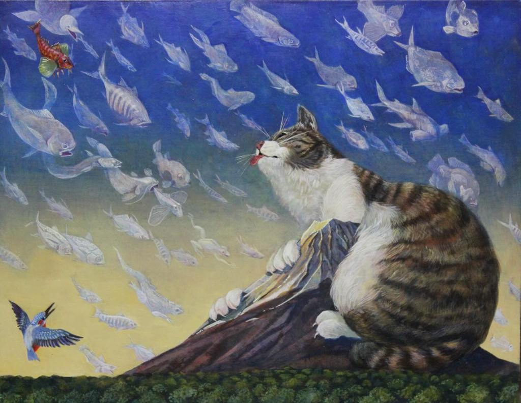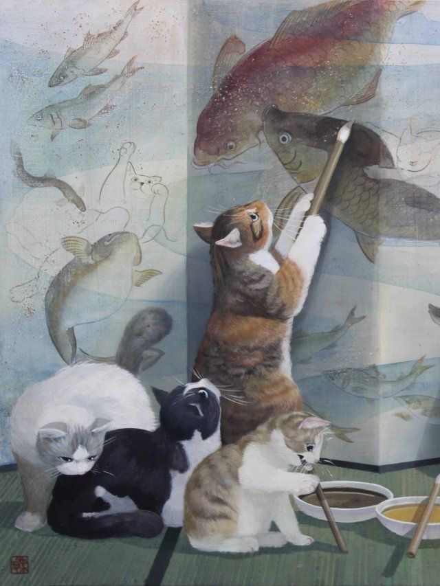 Del cuadro “Hazte con un gato” dice: “Me basé en el dicho japonés ‘Hazte con un gato’, que suele usarse cuando uno está tan ocupado que incluso necesita la ayuda de un gato…”