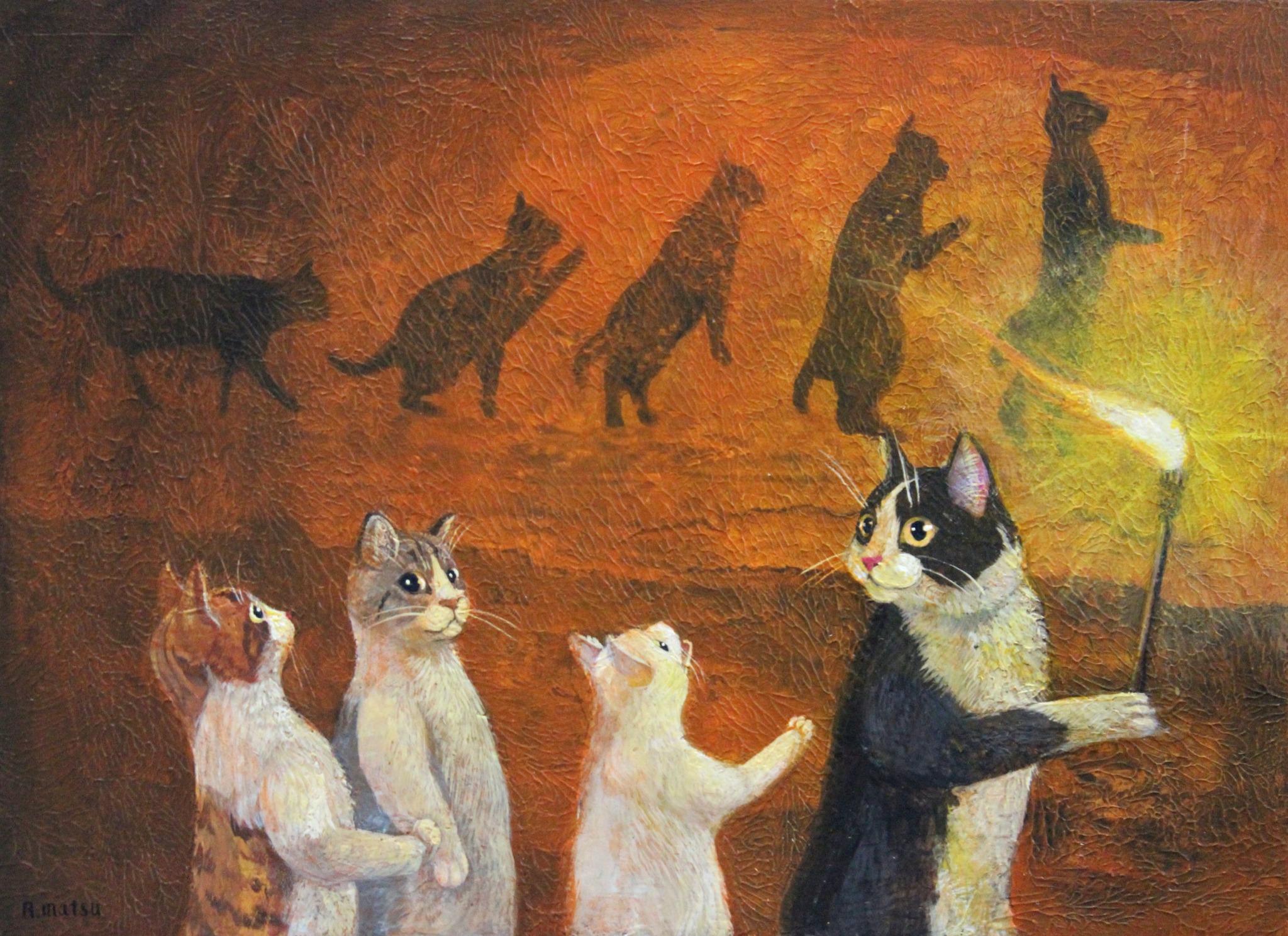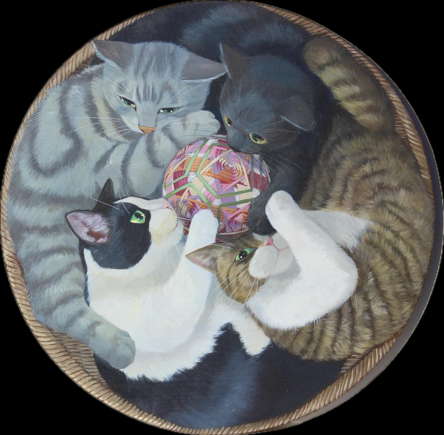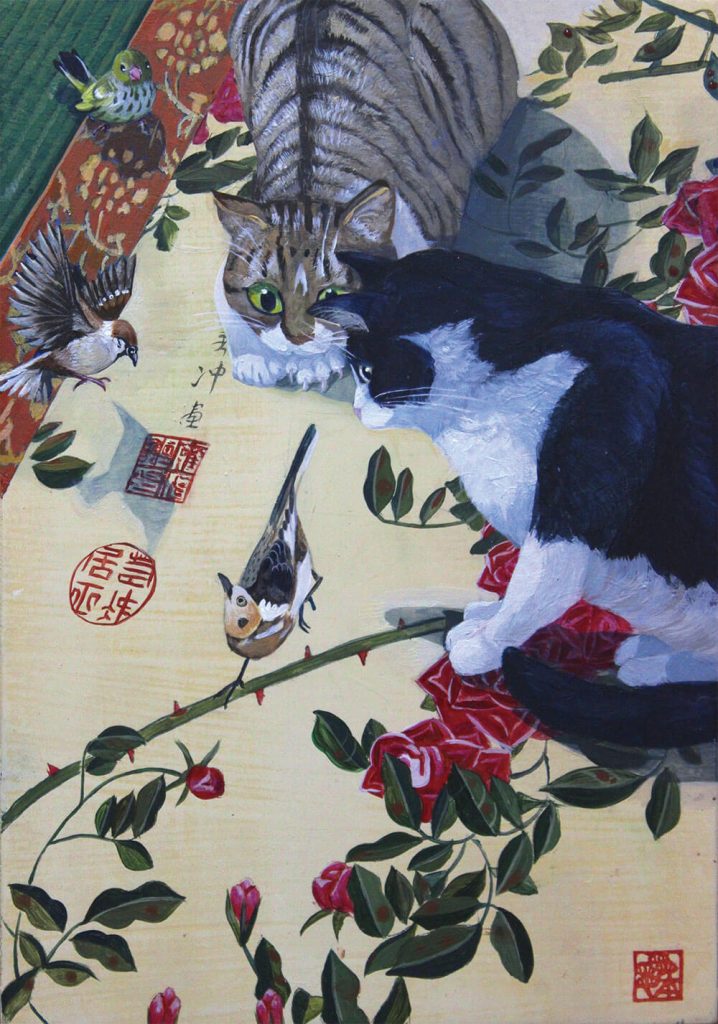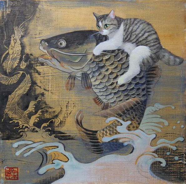 Del cuadro “Hazte con un gato” dice: “Me basé en el dicho japonés ‘Hazte con un gato’, que suele usarse cuando uno está tan ocupado que incluso necesita la ayuda de un gato…”
