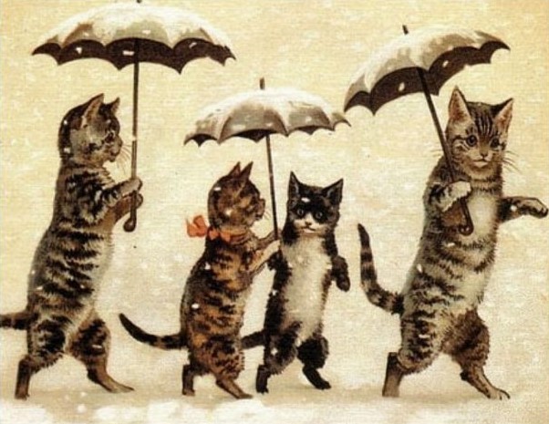 El otro grupo dice todo lo contrario, según otro proverbio de la misma época: “Cuando el tiempo amenaza nieve y granizo, o ruidosa tormenta de viento, el gato juega, mueve el rabo y hace monadas”. Los marineros solían preocuparse cuando veían que el gato del barco “tenía un vendaval en el rabo”.