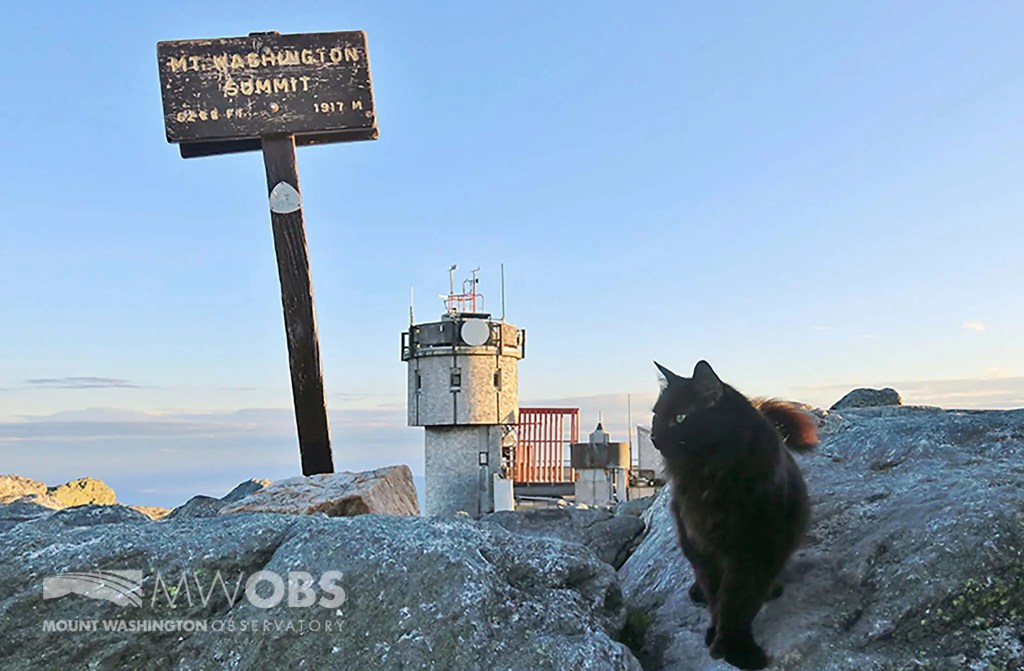 Termina diciendo: “Solo puedo añadir que estos pronósticos no son aplicables a la cima de Monte Washington, quizá debido a la altura”. Marty, un Maine Coon negro, falleció el 10 de noviembre de 2020, a los 14 o 15 años. Solía recibir a los observadores con su largo y fornido rabo muy tieso, dejando claro que ningún otro gato de Nueva Inglaterra vivía a semejante altura. Nimbus, un gato gris de pelo corto, es el actual residente en Monte Washington.