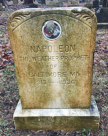 El periódico The Baltimore Sun anunció en 1930 que un gato persa blanco afincado en la calle St. Paul era “un barómetro felino”. De nombre Napoleón, pertenecía a la Sra. Fanny de Shields y era capaz de prever la llegada de la lluvia: solía echarse la siesta tumbado de costado, pero si se dormía sobre la tripa con las dos patas delanteras a cada lado de la cara, era infalible, llovía en las siguientes 24 horas.