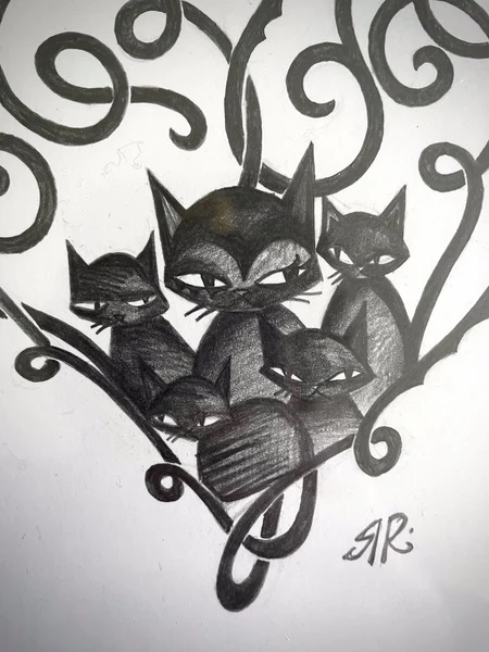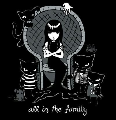 Emily tiene cuatro gatos negros que la acompañan a todas partes. Se llaman Mystery, Miles, Nee Chee y Sabbath. Mystery, la única hembra, nació un 13 de mayo y vive con Emily desde que esta tenía seis años (ahora tiene 13, siempre tiene 13). Es la lideresa y se la reconoce por su bigote rizado y por llevar una estrella colgada del cuello. A veces, también tiene una estrella sobre el ojo derecho. Su maullido es escalofriante, le encanta echarse la siesta y es una gata de la vieja escuela.