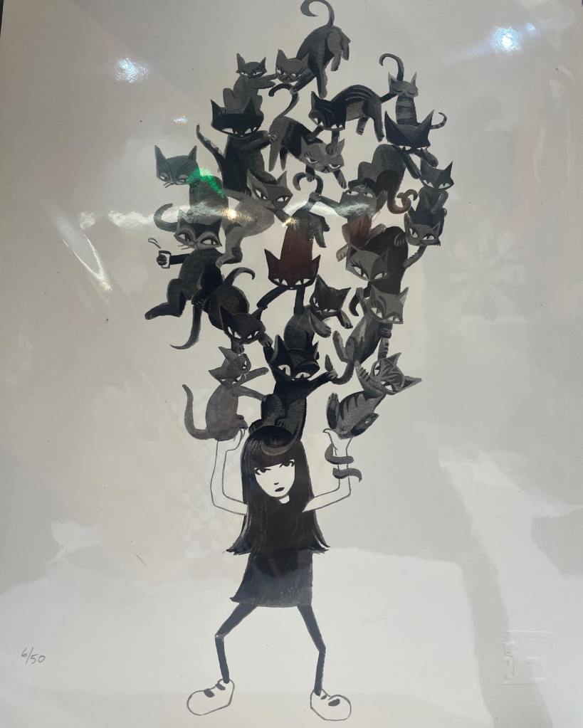 A la pregunta de si los gatos eran tan esenciales en su vida como en la de Emily, contestó: “¡Desde luego! Los gatos han formado parte de mi vida desde mi niñez. Todos han estado conmigo para lo bueno y lo malo. Jugar y dormir con ellos, acariciarlos, me ayuda a recuperar mi sano juicio. Además, son modelos maravillosos a la hora de dibujar y esculpir. Les basta un pequeño cambio en su postura, en la posición de los ojos, en la mirada para expresarlo todo. Me identifico plenamente con todas las locas de los gatos; en cuanto siente la cabeza, creo que tendré un santuario para gatos”.